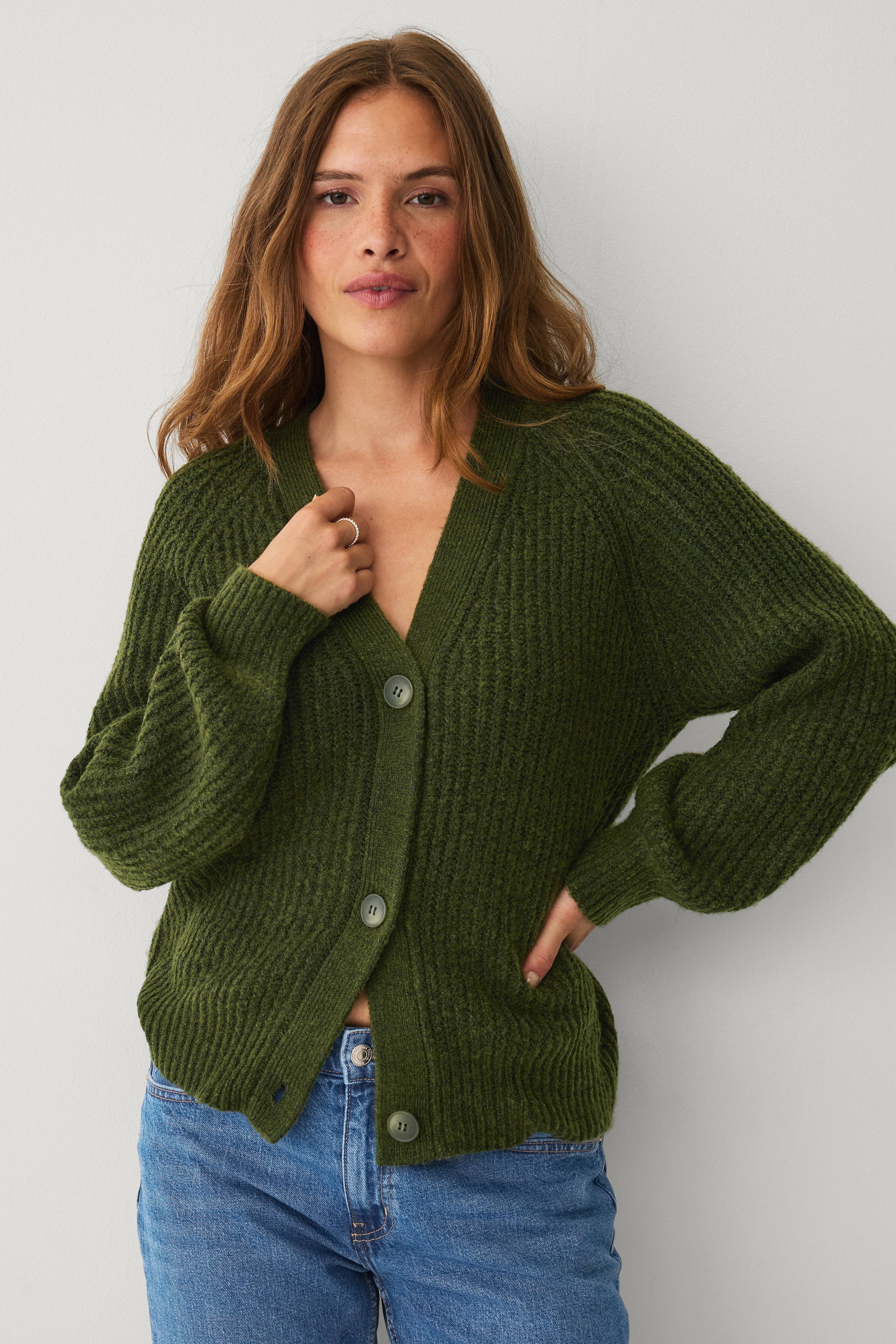 • Blød, strikket cardigan• V-formet halsudskæring• Knapper foran• Ribmanchetter ved manchetterne og ved nederste kant• Længde: 62 cm i størrelse S