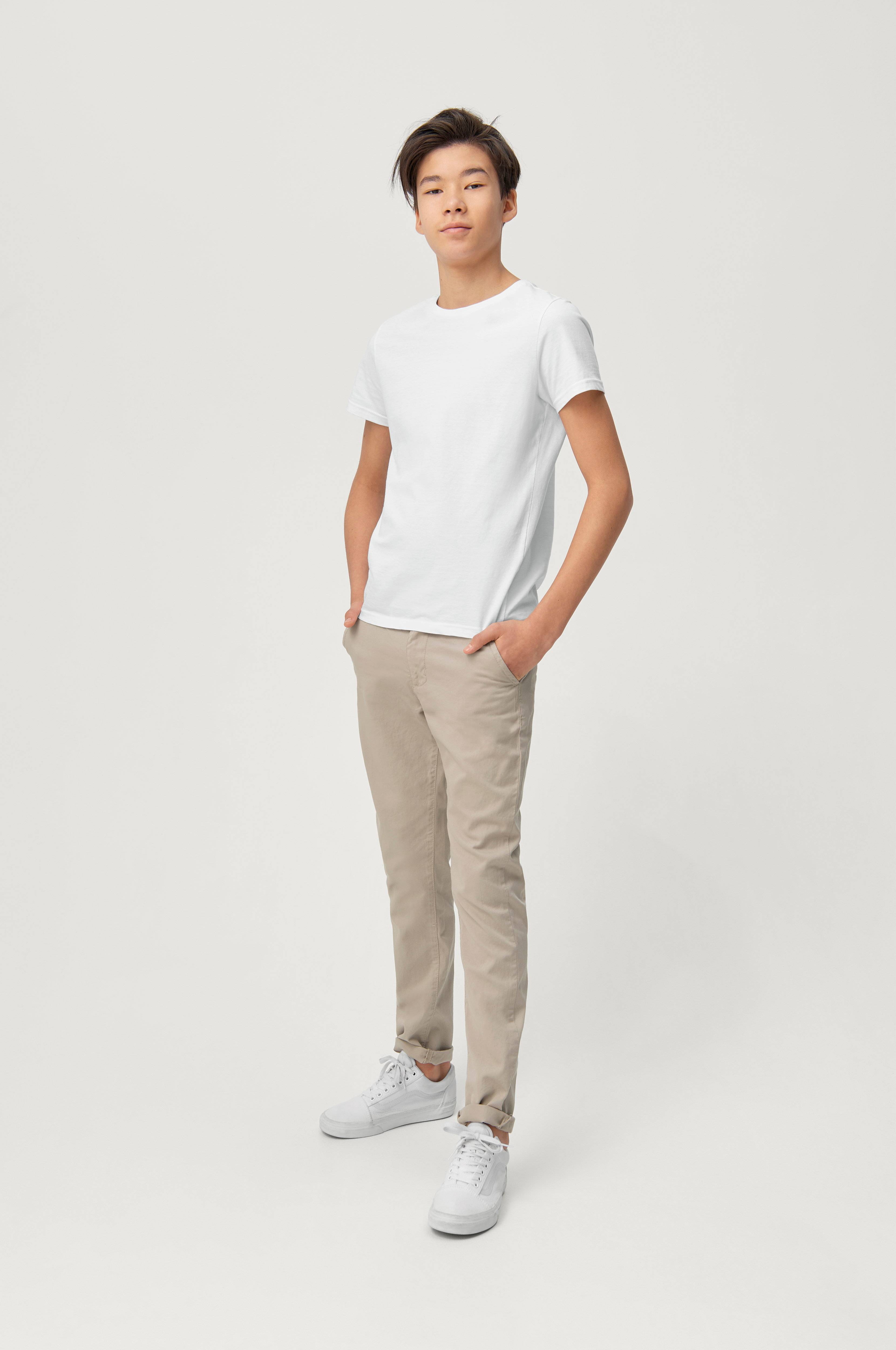 Flotte chinos i juniormodel. Lidt vide i taljen, hvis man er på den tyndere side, men de justerbare elastikbånd gør, at det fungerer.