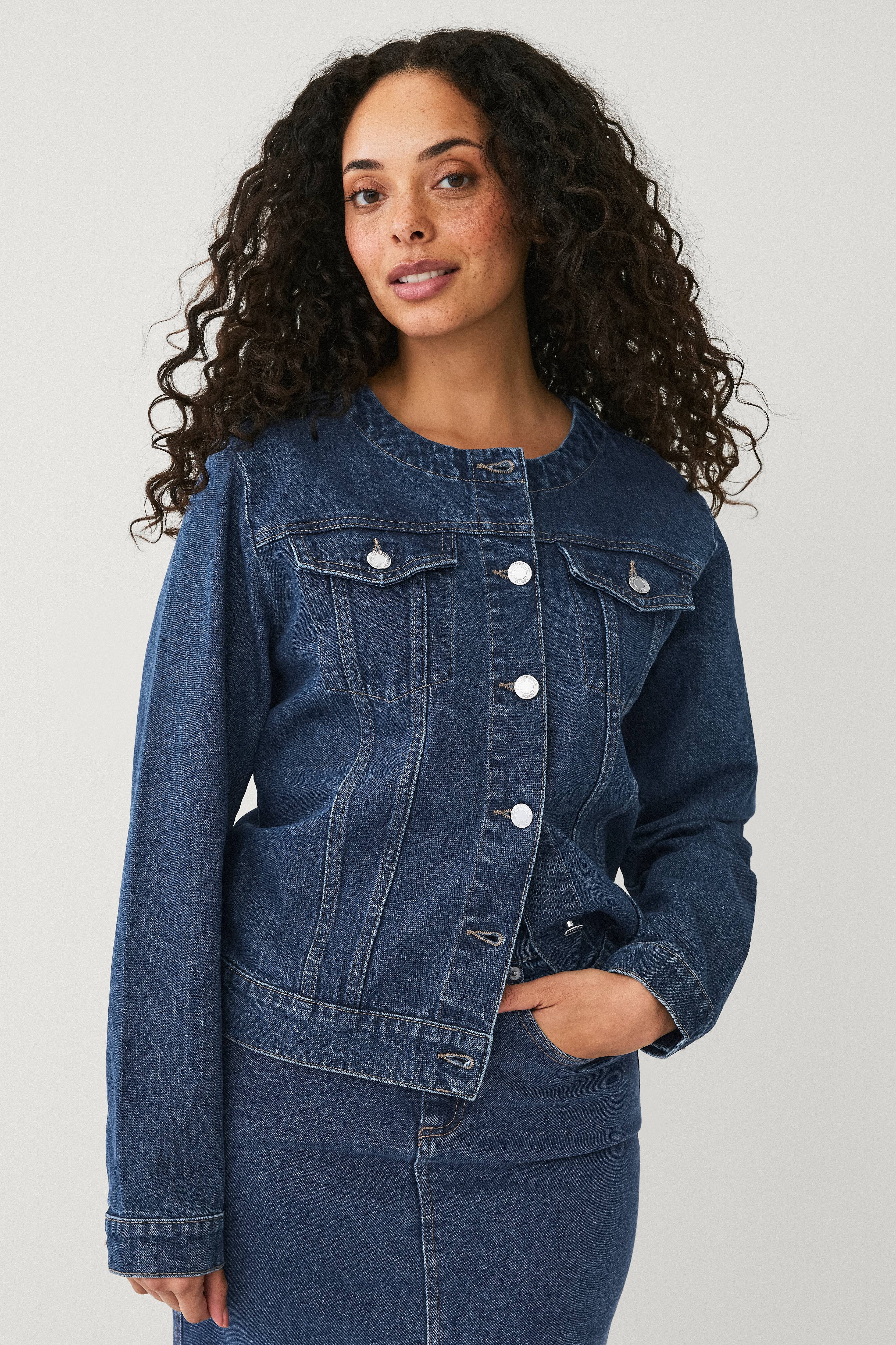 • Cowboyjakke med lange, lige arme og afrundet halsudskæring