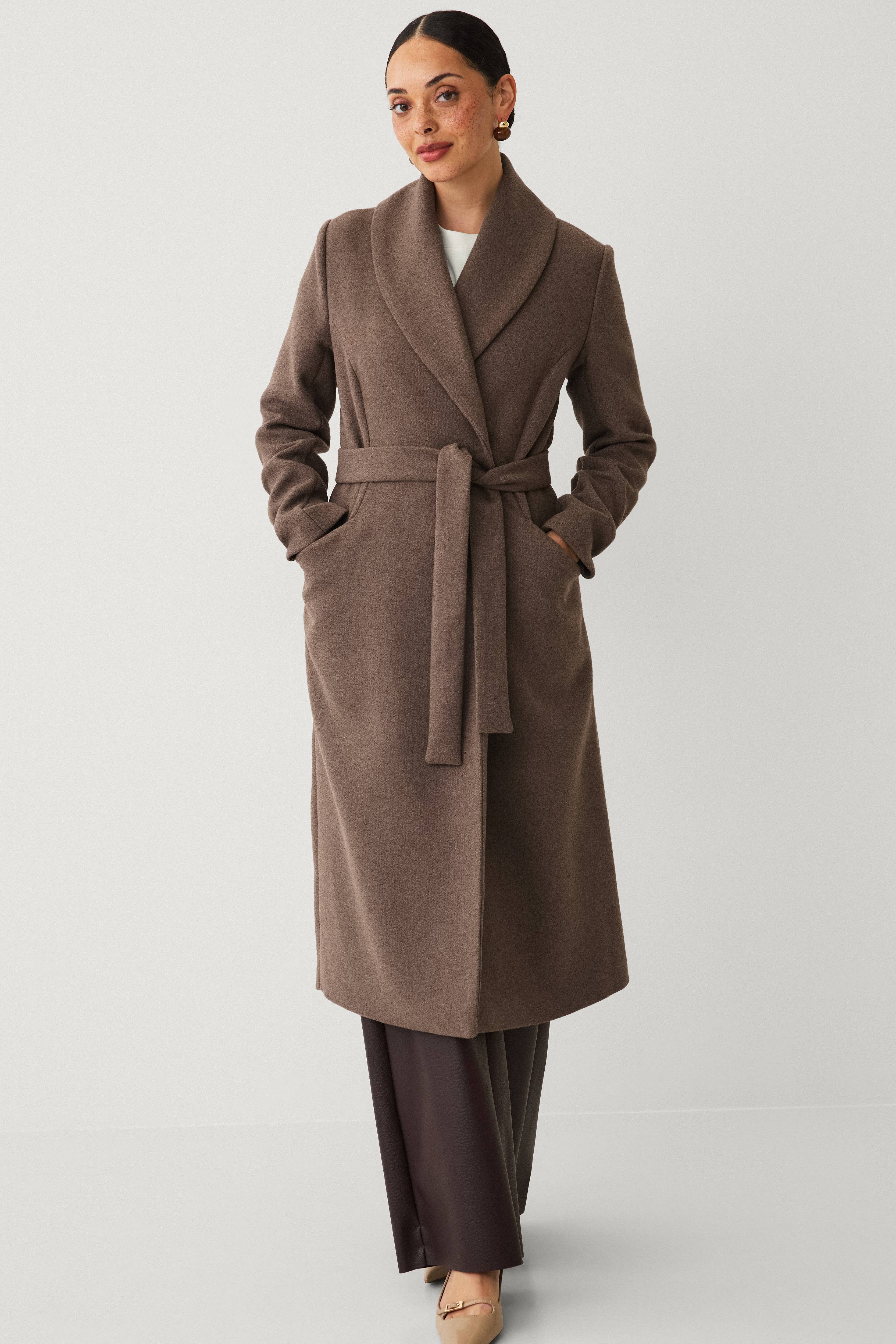 • Fremstillet af filtet uldmiks• Lukning med en skjult trykknap• To lommer• Aftageligt bæltespænde ved taljen• Vævet, glat for• Slids bagpå• Længde: 120 cm i størrelse 36