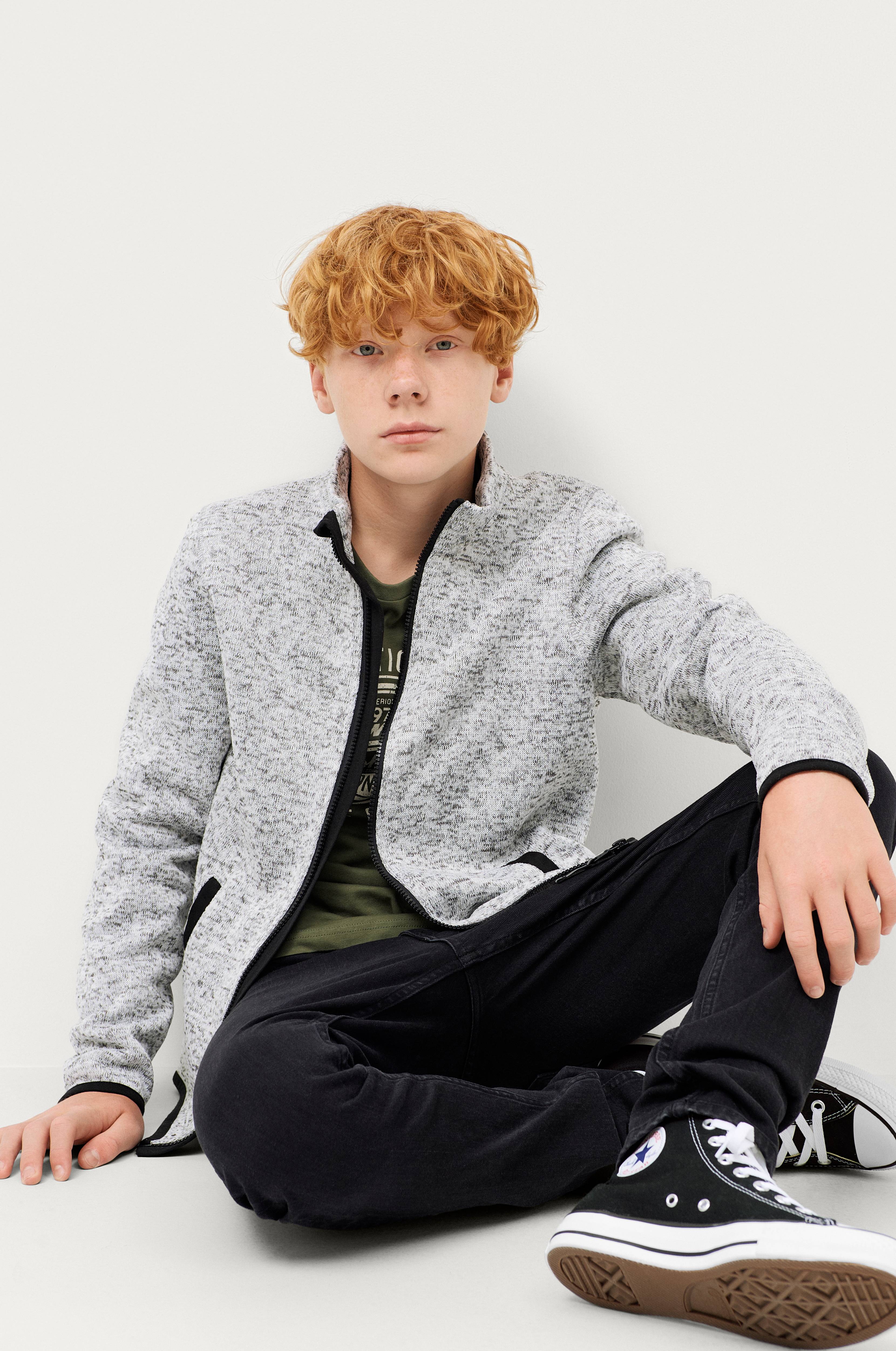 • Trøje i fleece med blød børstet inderside• Høj krave• Lynlås• To lommer foran• Elastiske kanter ved manchetterne og nederst