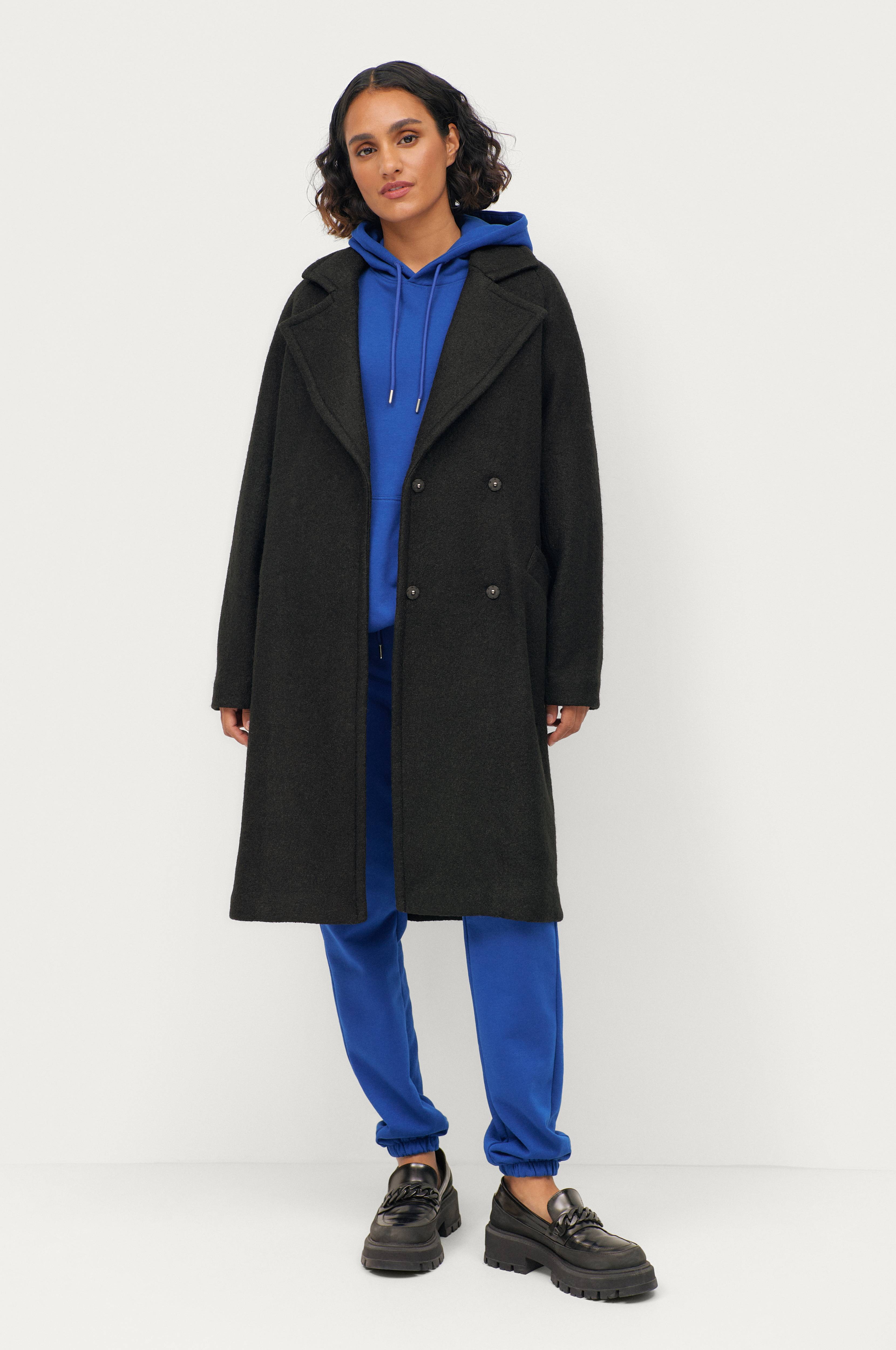 En jakke i oversize-model i flot og behageligt materiale med fine trykknapper! Jeg købte str. 38/40, selvom jeg normalt bruger str. 40/42, og den sad perfekt
