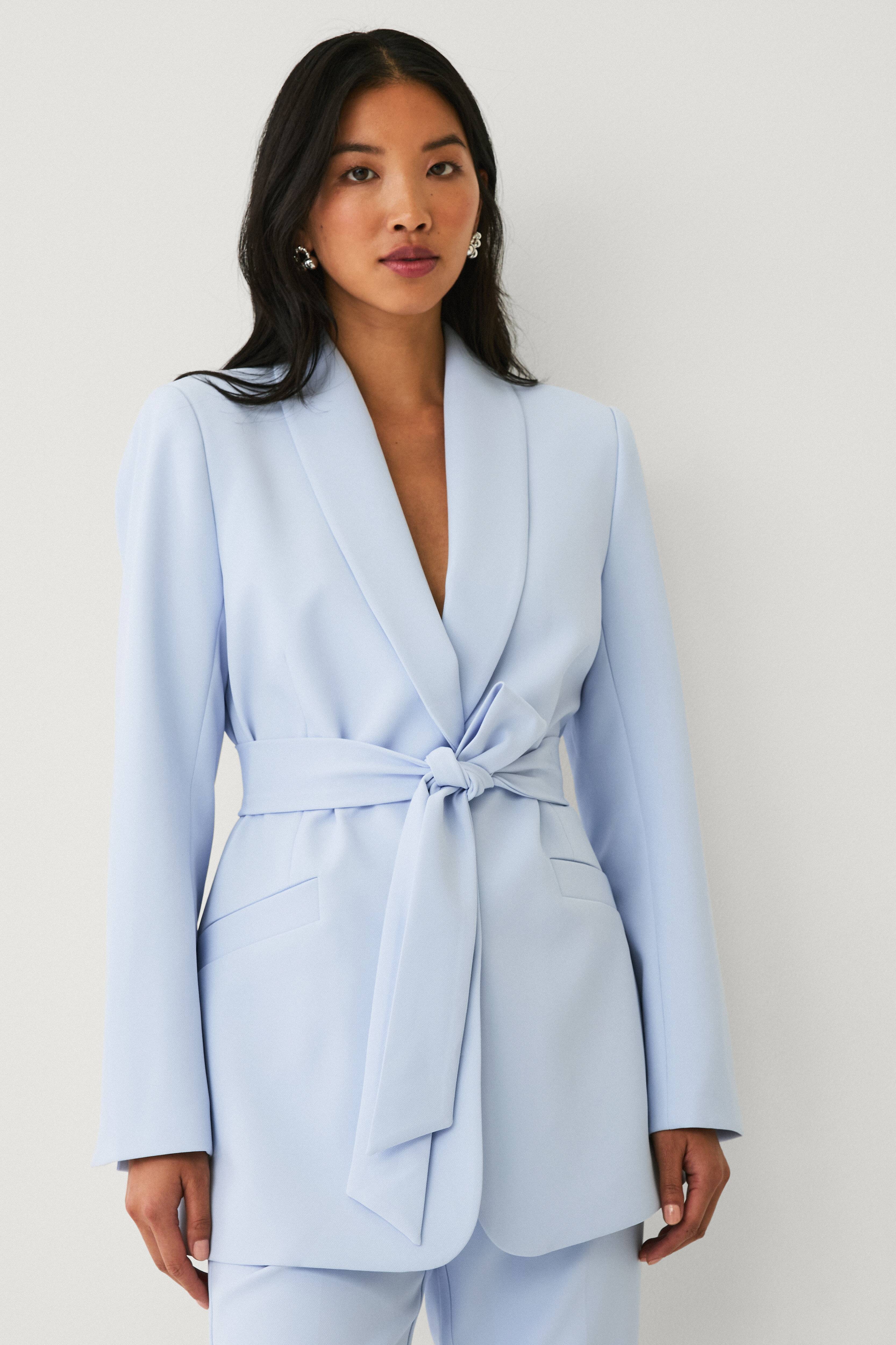 • Store størrelser• Figurformede habitjakke med bekvem strækkvalitet• Vævet, glat for• Forede skuldre• Lukning med to skjulte trykknapper• To lommer• Aftageligt bindebælte ved taljen• Ventilation nede bagved• Længde: 75 cm i størrelse 36
