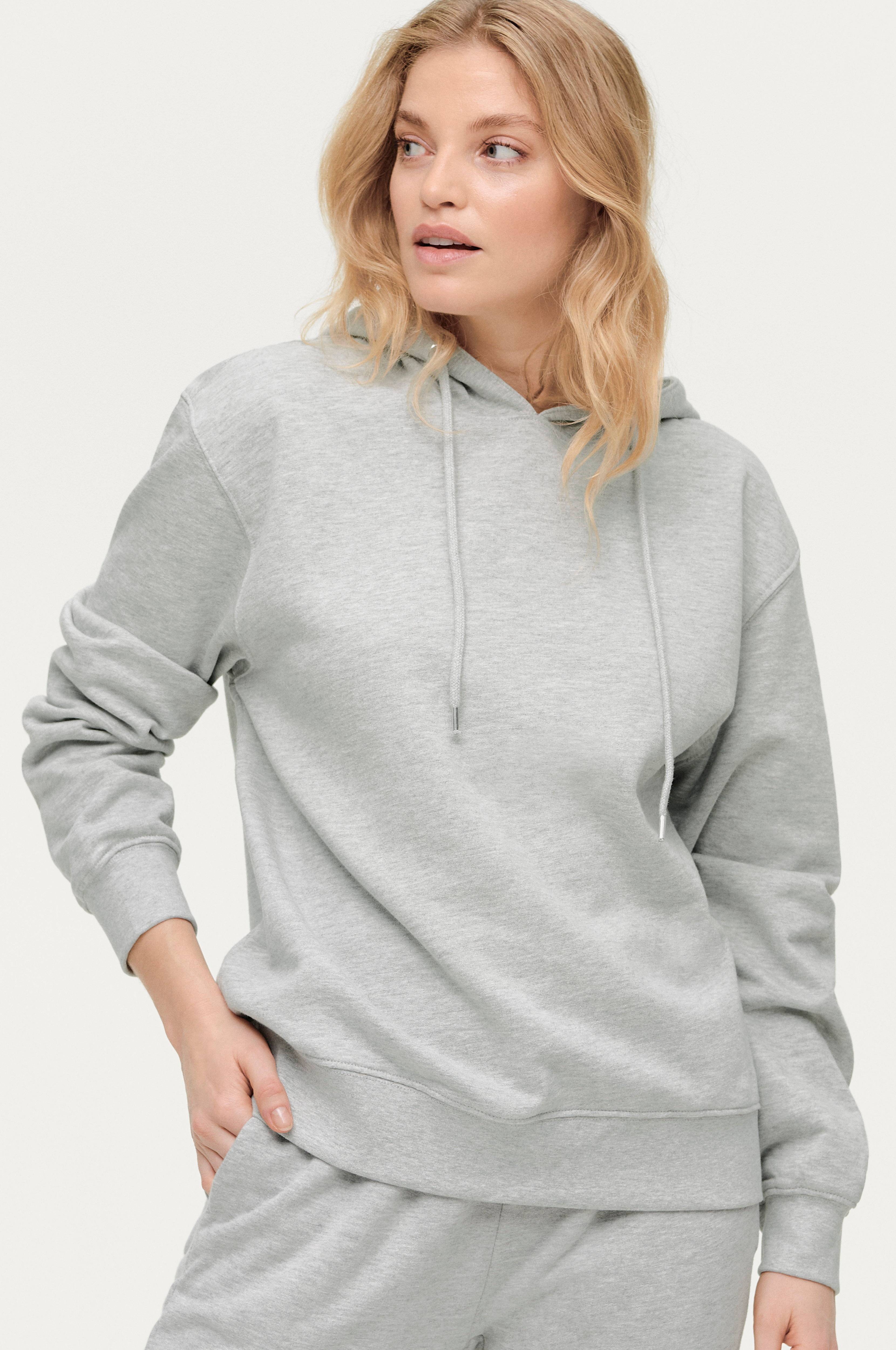 Hættetrøje med blød, børstet inderside. Hætte med løbegang. Rib i ærmekant og forneden.