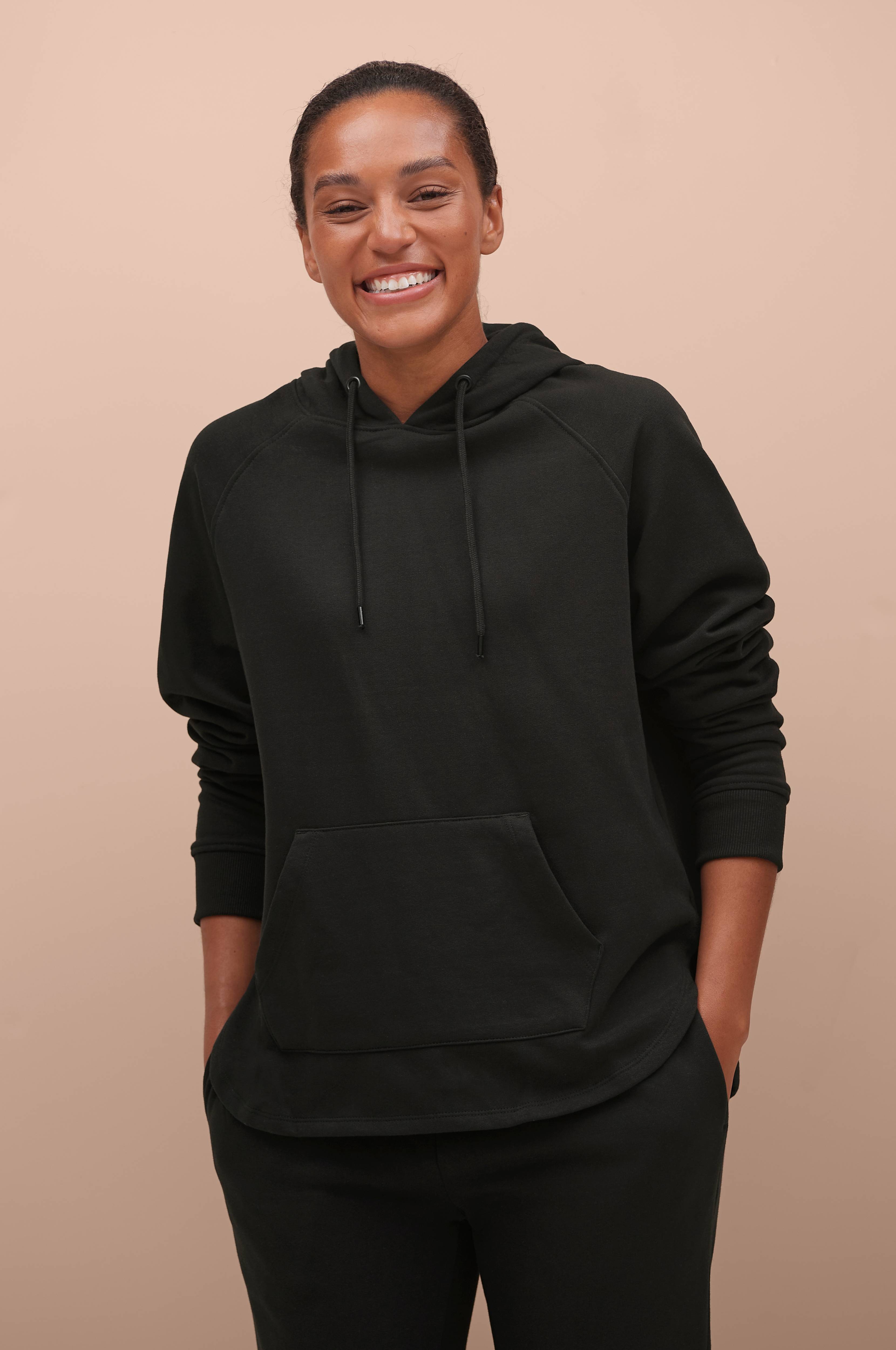Dejligt med en hættetrøje, der ikke har ribkant i bunden.