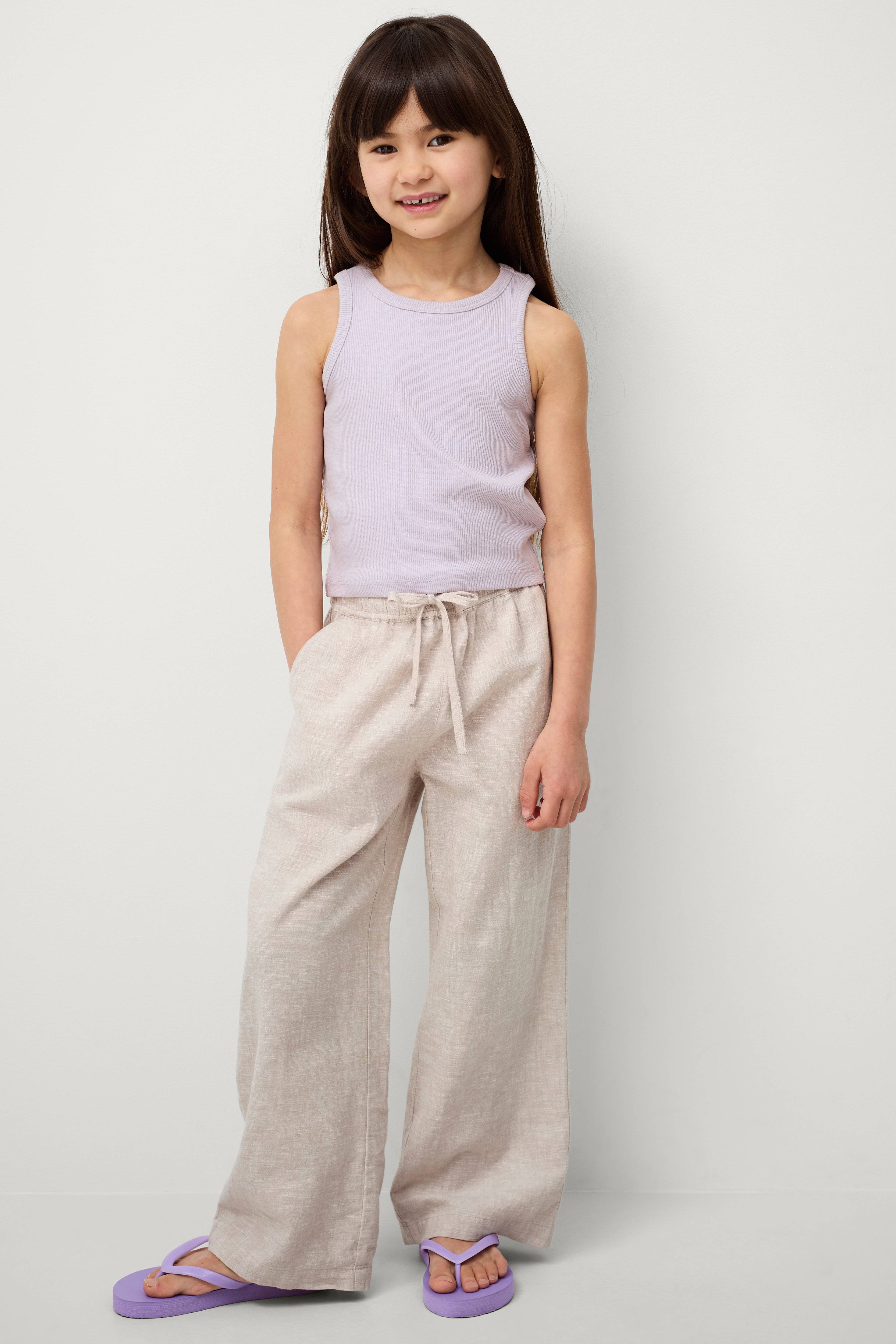 • Bukser i hør• Elastisk talje med træksnørre• Sidelommer• Brede ben