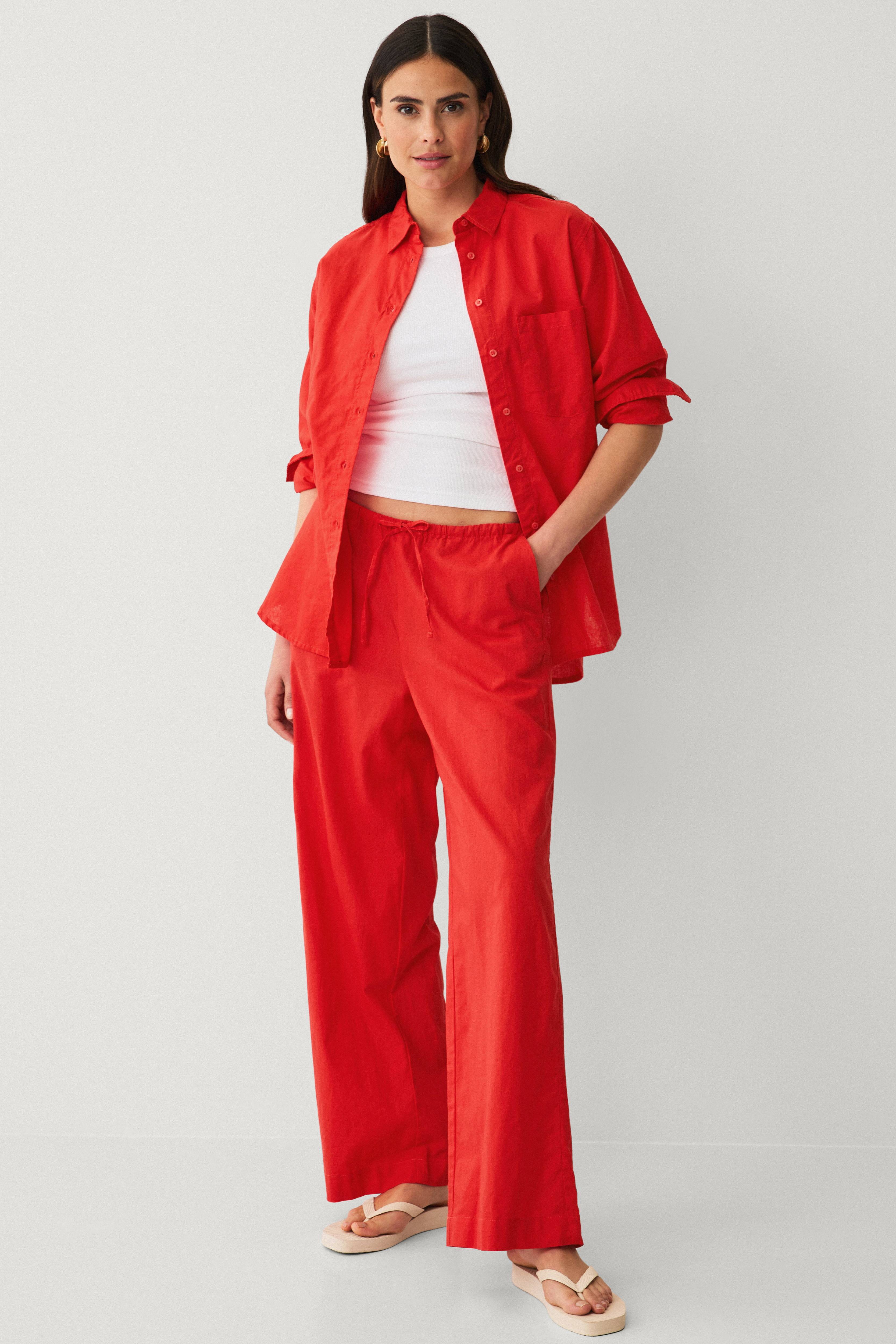 • Bukser i hørblanding• Elastisk talje med træksnørre• Ben• Sidelommer• Indre benlængde: 77 cm i størrelse S