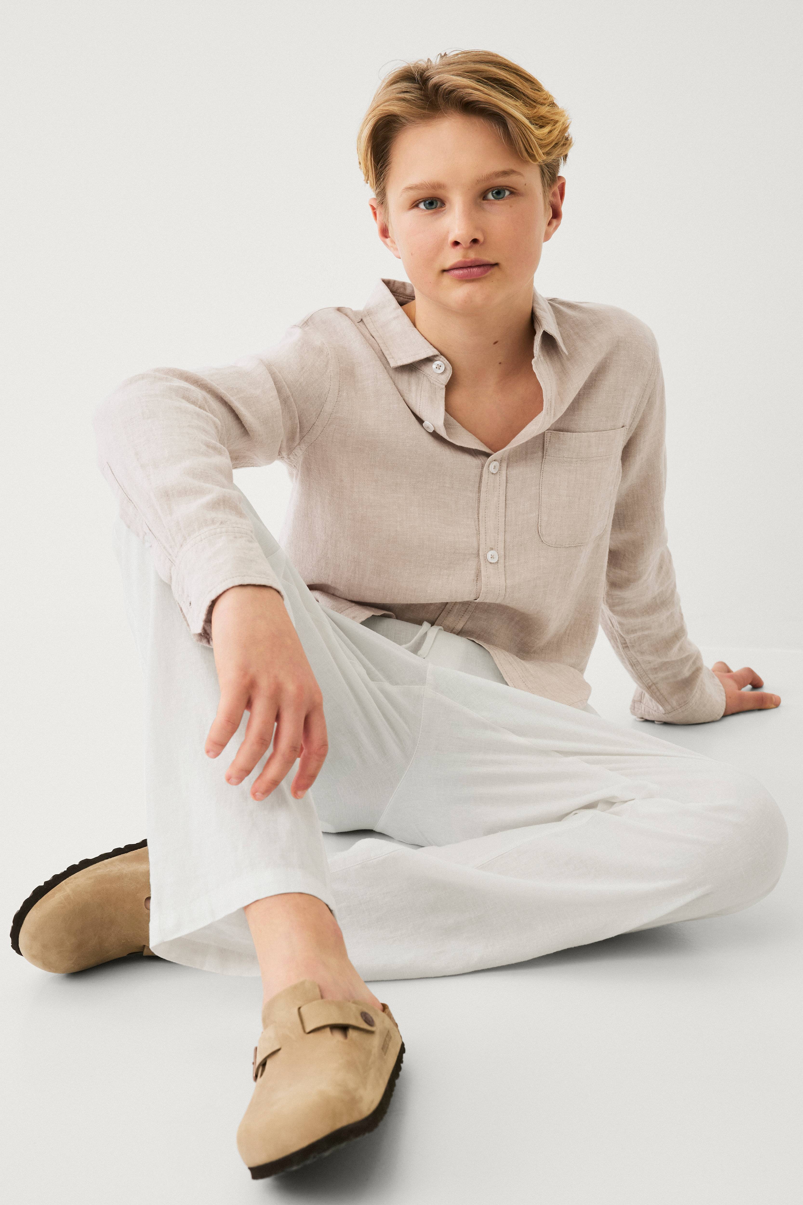 Joggingbukser? sagde sønnen. Krympede meget i længden og blev for korte, sad ellers godt over bagdelen (sønnen er lidt rund). Men ville have krævet meget strygning for at få nogen stil…