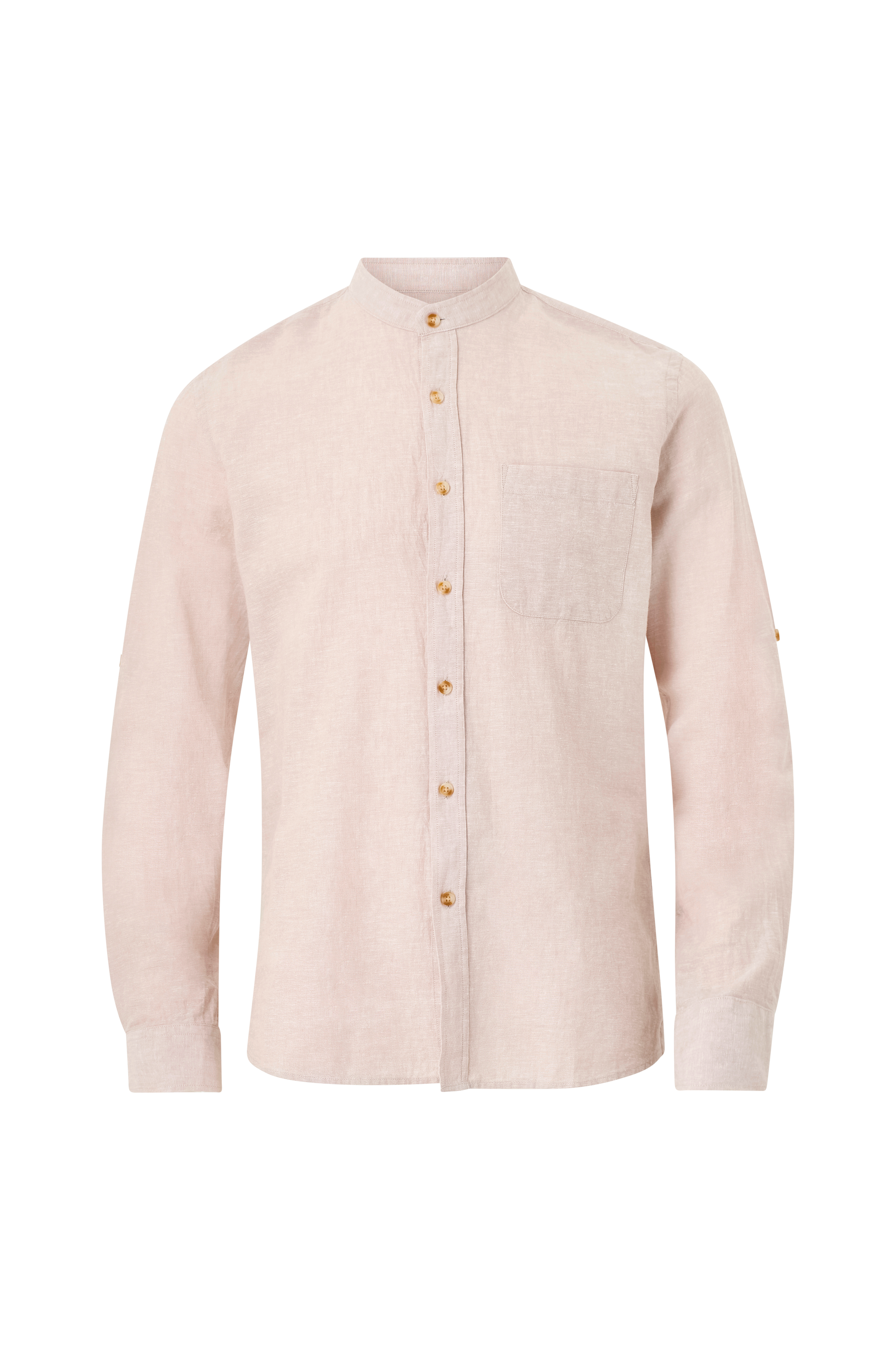 • Skjorte i hør• Knapper foran• En brystlomme• Lange, opfoldende ærmer med manchetter ved manchetterne• Afrundet søm• Længde: 72 cm i størrelse M