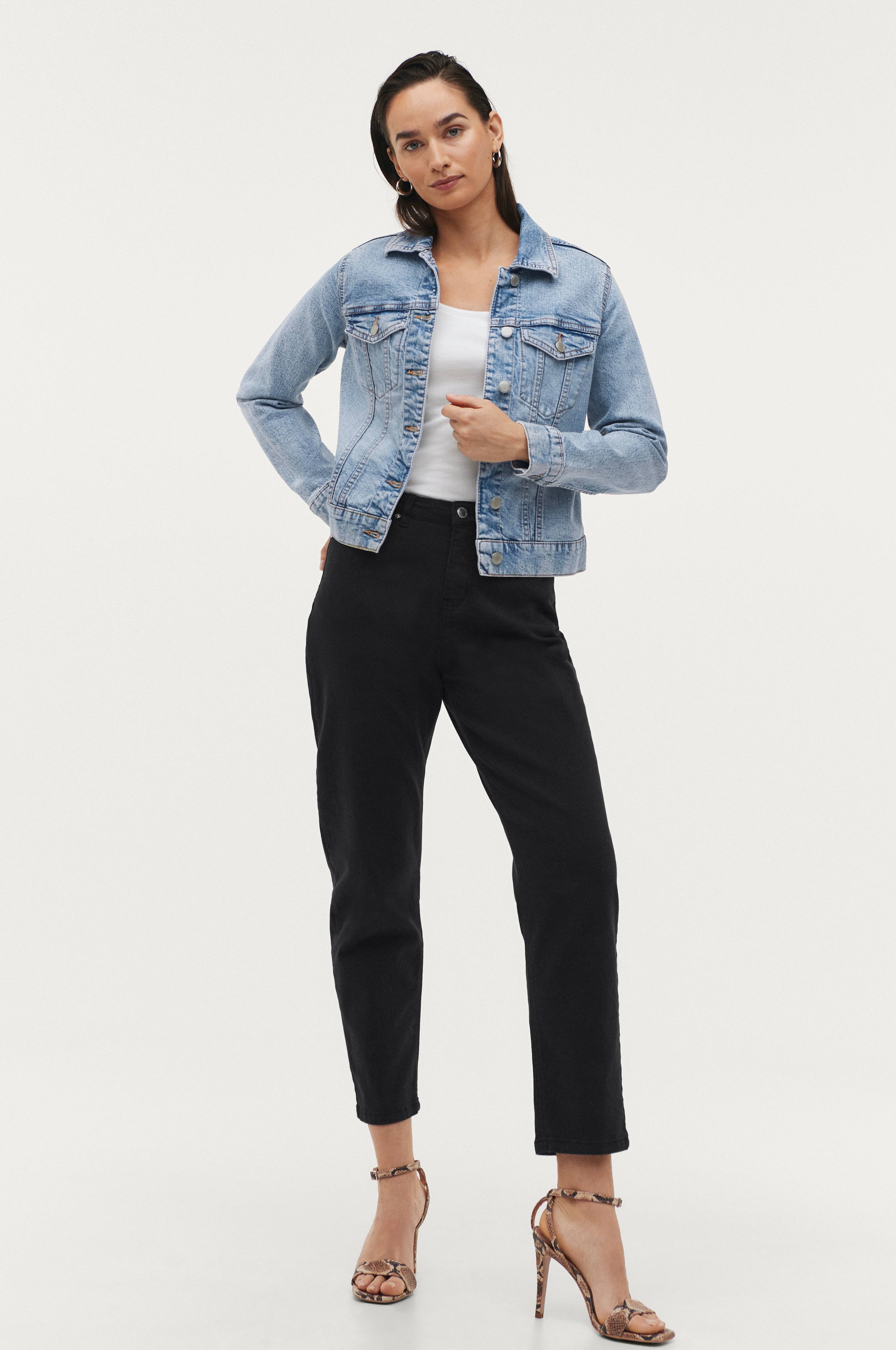 Jeans Kiara Twill i model med løs pasform og bukseben der bliver lidt smallere nedefter. Høj talje med lynlås i gylpen og tre lommer foran samt to lommer bagpå - alle med små nitter i kanterne. Indvendig benlængde ca. 70 cm i str. 36.