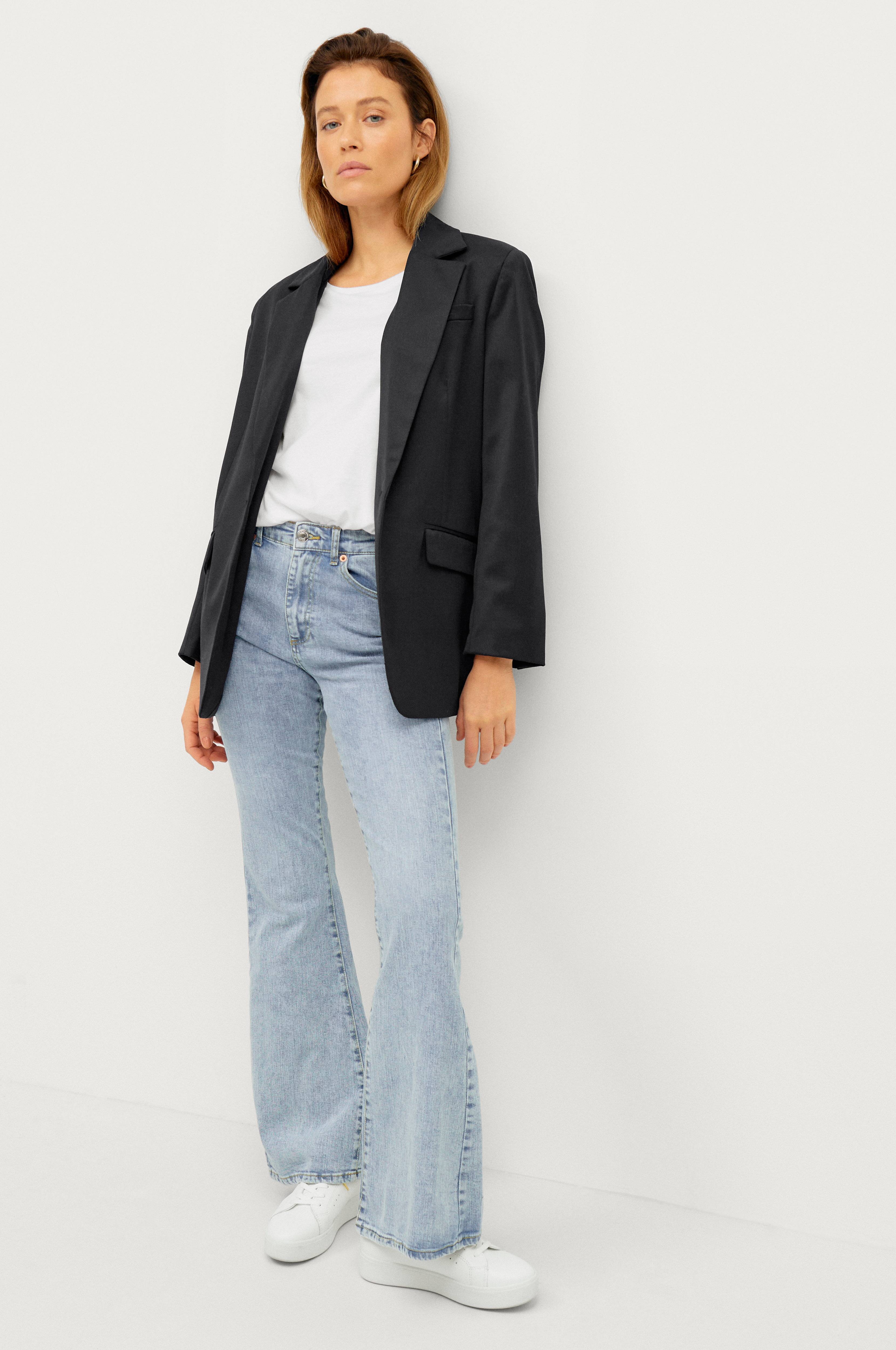 - Disse jeans er produceret med Jeanologias Laser- og E-Flow-teknologi. Processerne reducerer i høj grad forbruget af el, vand og kemikalieforbrug i farvning, vask og finish sammenlignet med traditionelle metoder. Fordelen ved laser er, at det kan skabe slidte effekter på stoffet i stedet for at bruge andre metoder, der kan være skadelige for miljøet og sundheden, f.eks. kemikalier, slidte effekter lavet i hånden og sandblæsning.