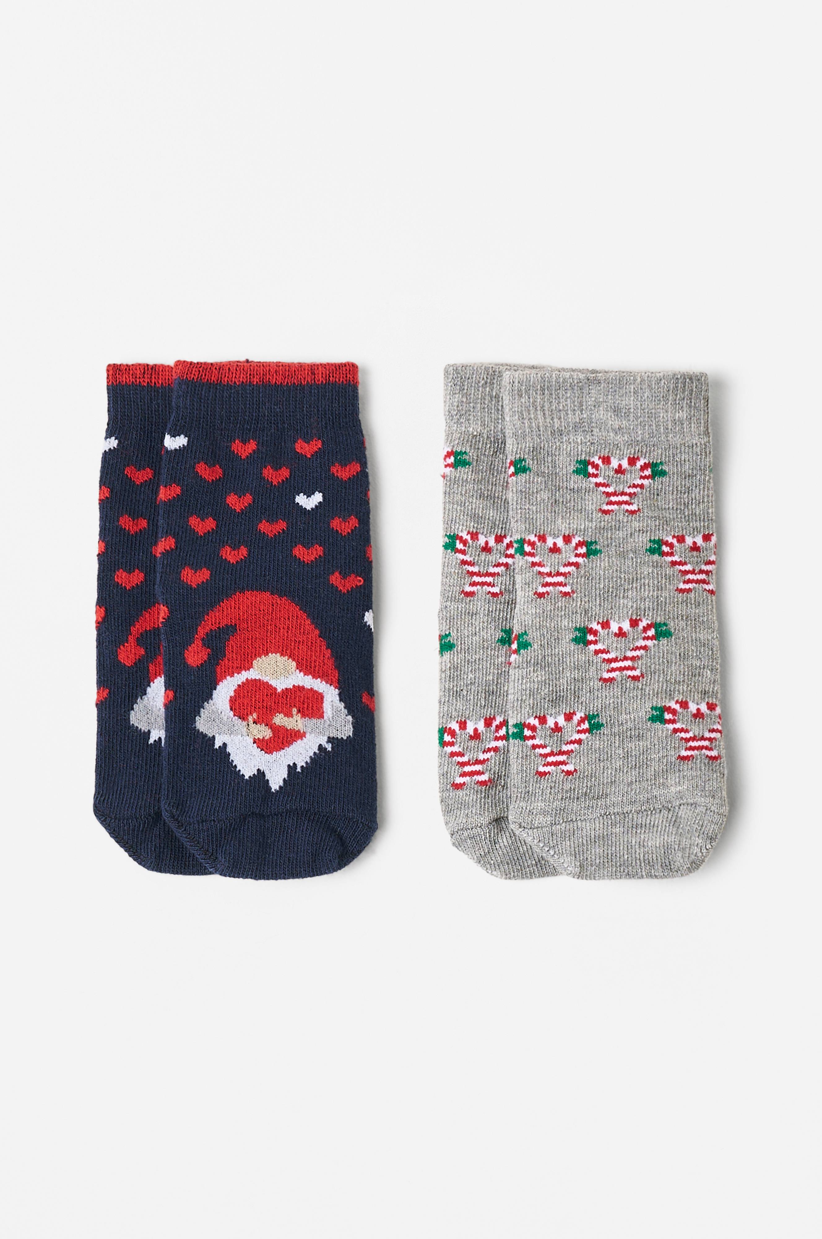 To par julestrømper med forskellige farver og julemotiver. Blød bomuldsblanding med ribkant på skaftet.