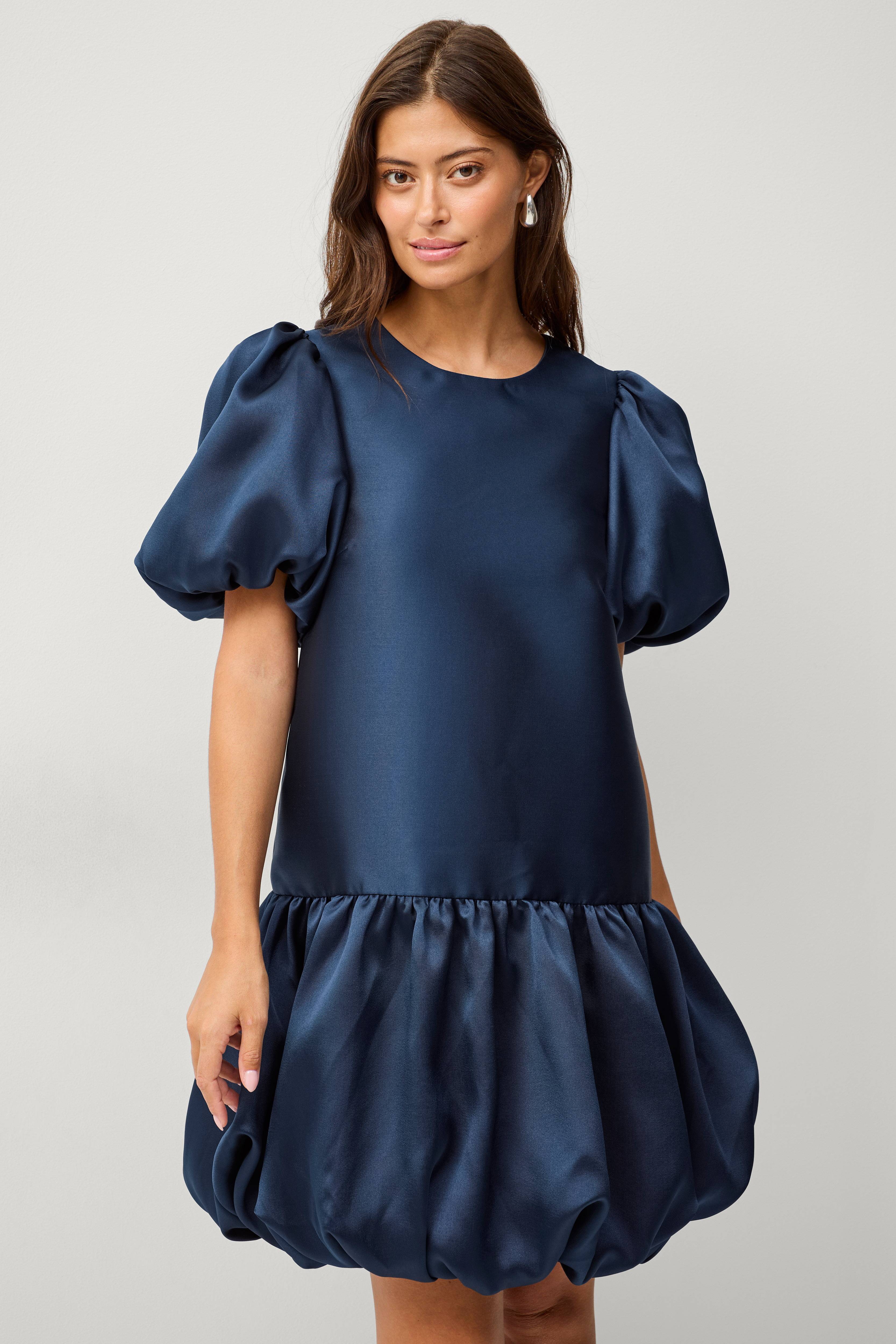 • Model med svaj med bred, ballonformet volant ved nederste kant • Rund hals med lynlås i ryggen • Kort ballonærme • Foret • Længde: 90 cm i størrelse 36