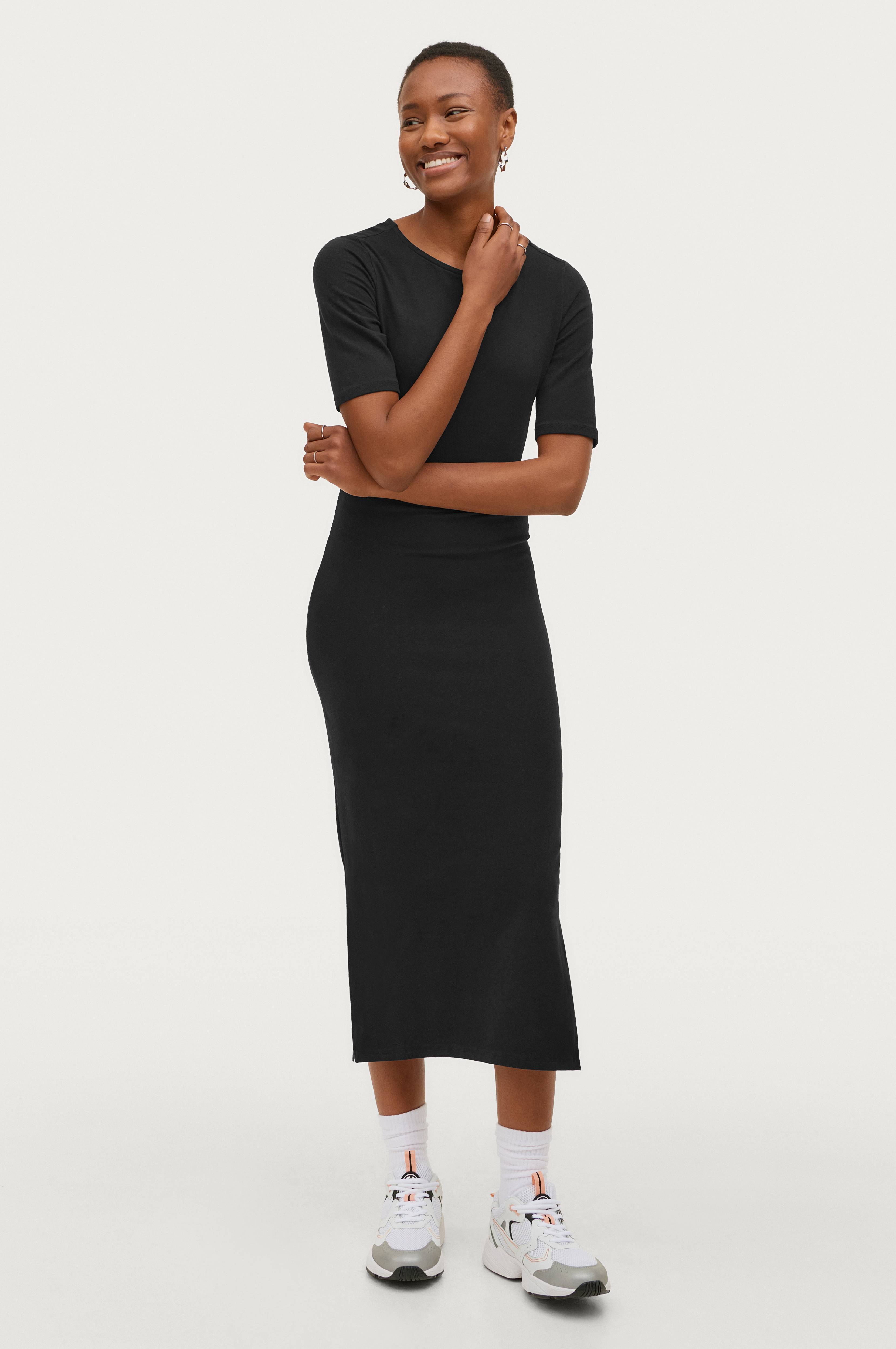 • Elastisk jersey • Rund hals • Kort ærme • Slidser i siderne • Længde: 125 cm i størrelse 36 • Ellos samarbejder med Better Cotton for at forbedre bomuldsdyrkningen globalt. Better Cotton er en global nonprofitorganisation, der underviser bomuldsdyrkere i metoder til mere bæredygtig bomuldsdyrkning og arbejder for mere effektiv brug af vand og reduceret brug af pesticider. Better Cotton bringer forbedrede sociale, økonomiske og miljømæssige forhold for bomuldsbønder. Ved at vælge vores bomuldsprodukter støtter du vores investering i Better Cottons mission. Better Cotton er fremskaffet via et system med massebalance og kan ikke fysisk spores til slutprodukter. Besøg bettercotton.org/learnmore for mere information om Better Cotton.
