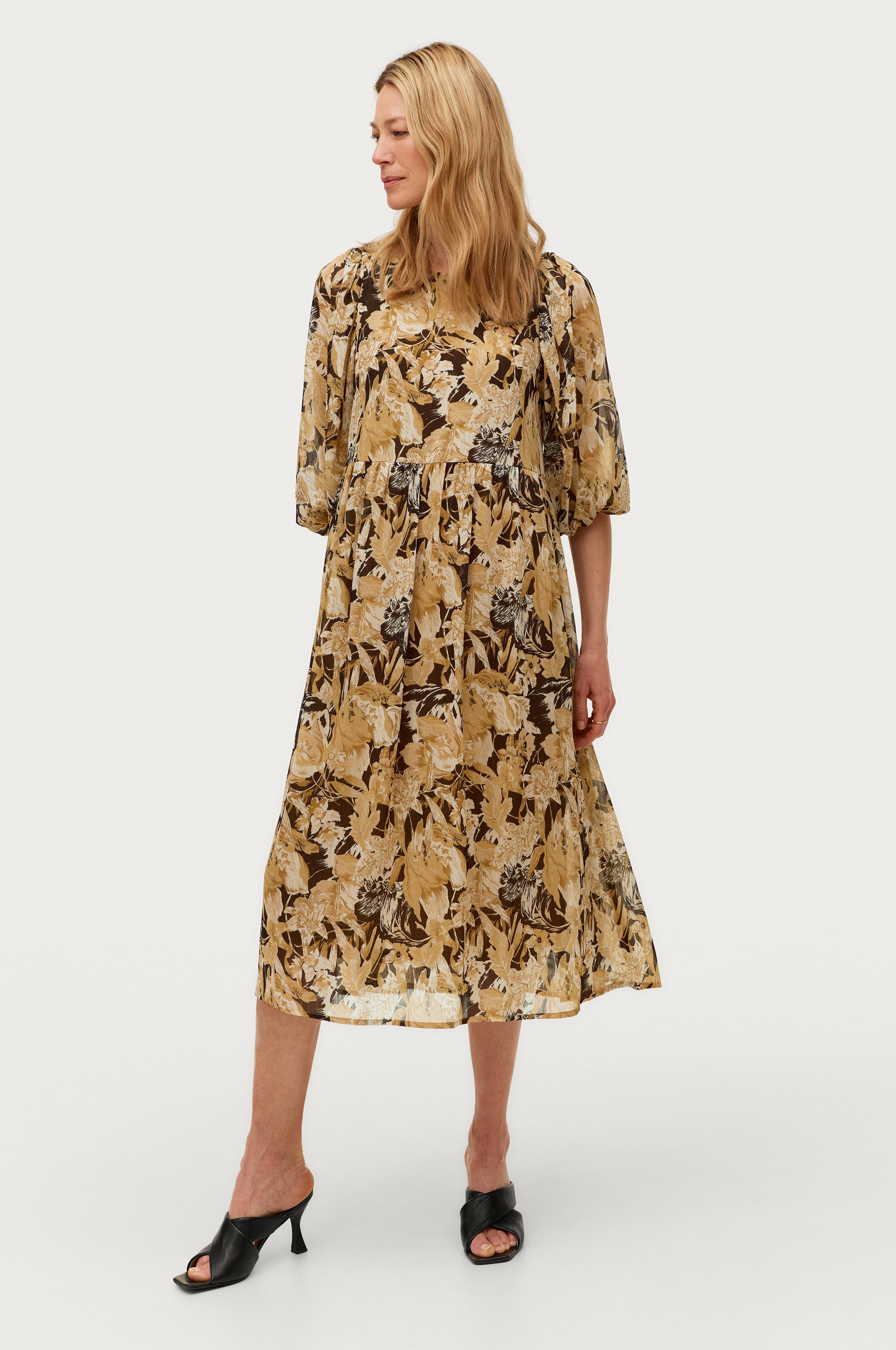 • Oversize model med svaj • Rynket talje • 3/4 langt ballonærme med elastisk ærmeafslutning • Kreppet chiffon vævning • Foret • Længde: 121 cm i størrelse 38/40