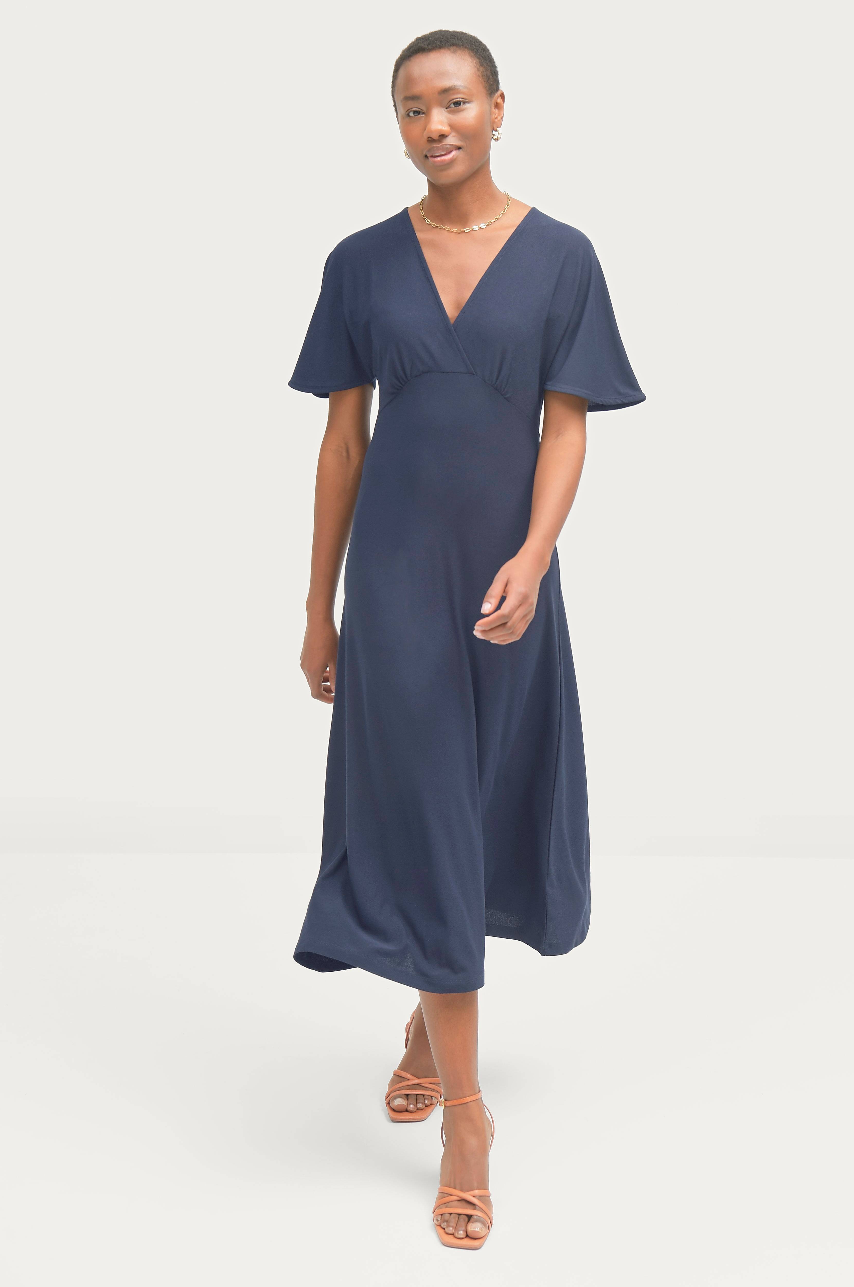 • V-udskæring • Korte sommerfugleærmer • Samling ved brystet • Længde: 125 cm i størrelse 34/36 • Produktet indeholder genindvundet materiale, som genbruges for at reducere mængden af affald samtidigt med at der ikke anvendes nye ressourcer.