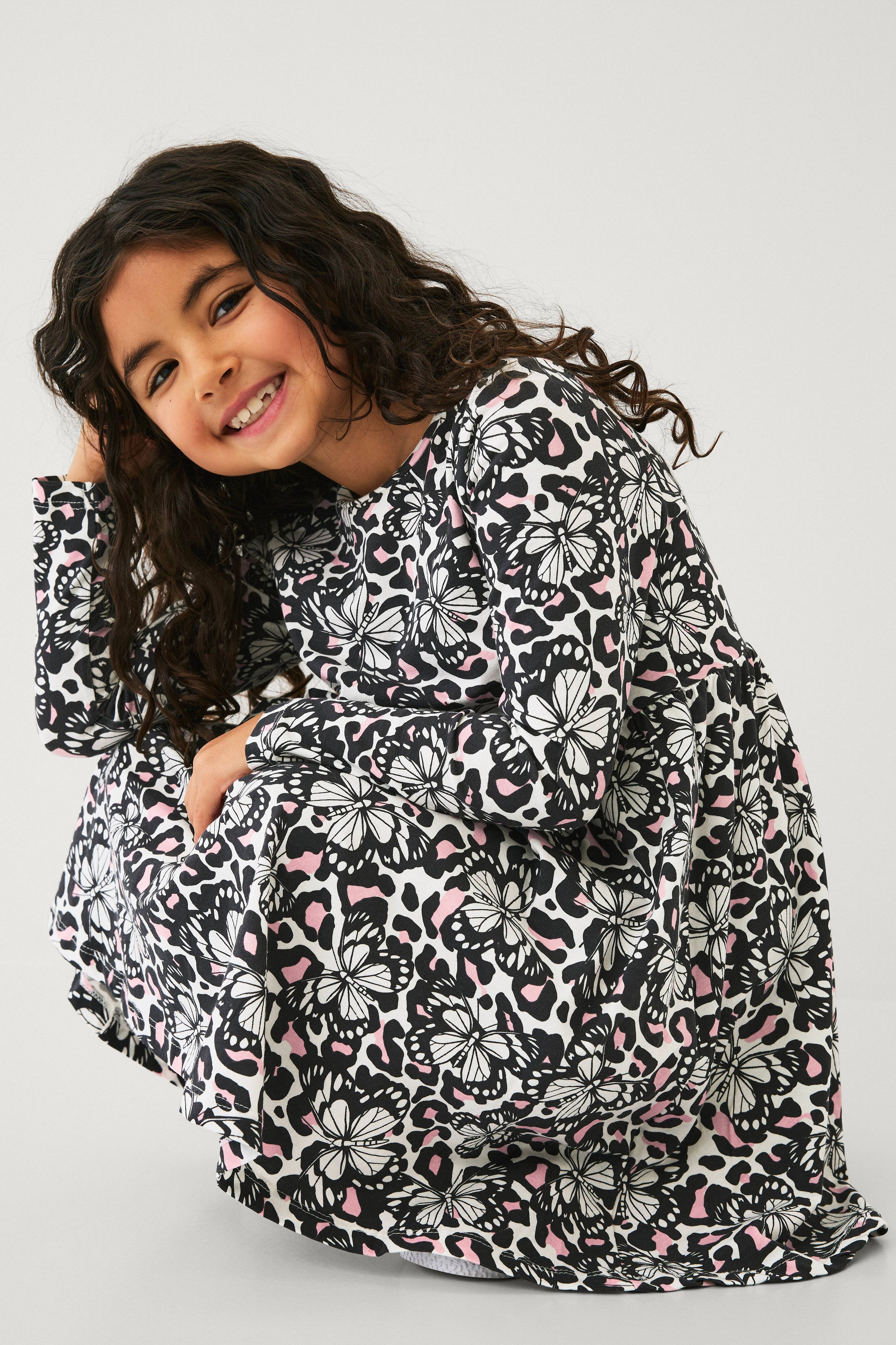 • Mønstret kjole i blød, elastisk bomuldsjersey