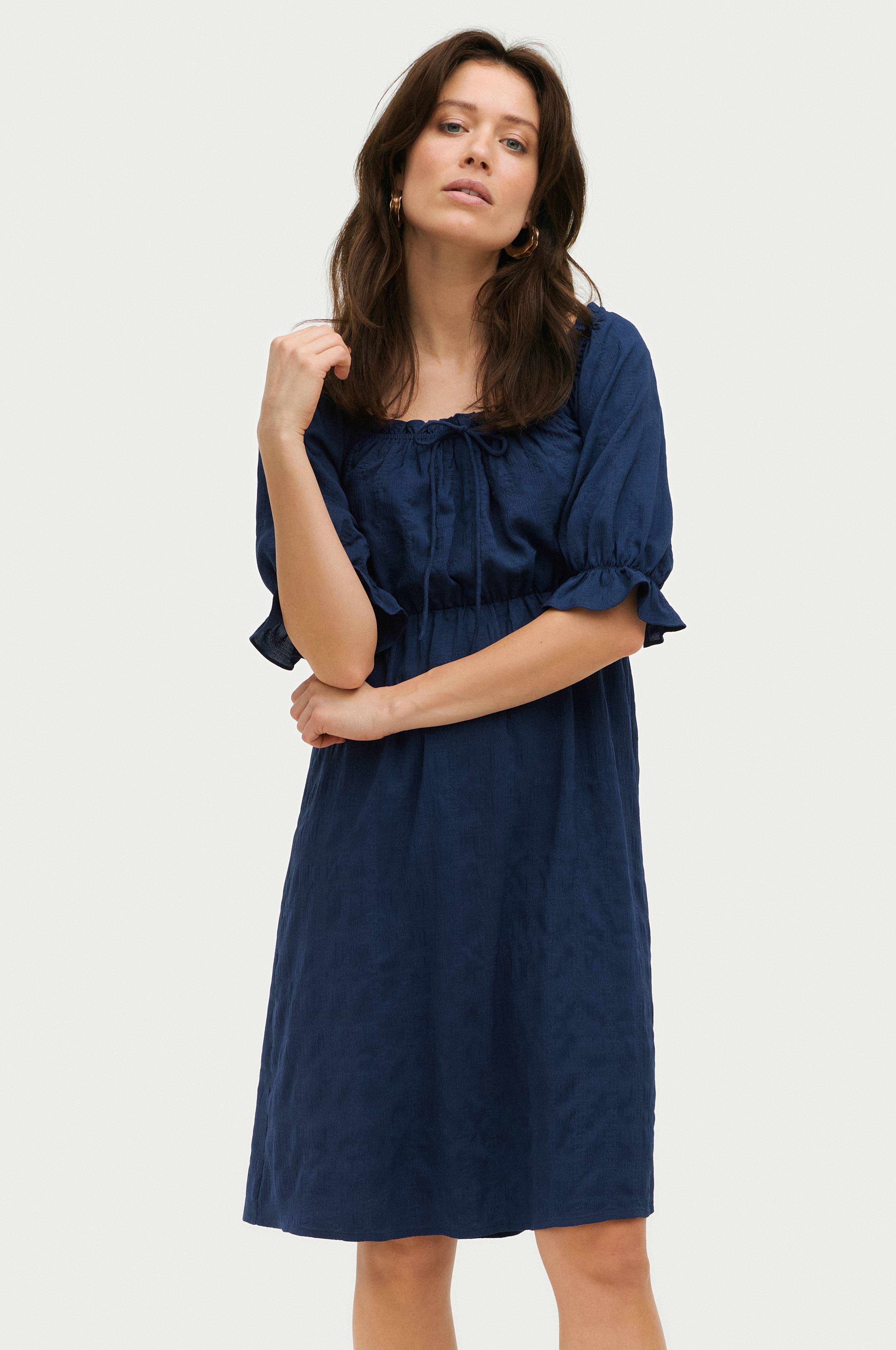 • Bred, elastisk halsudskæring med volant og bindebånd• Halvlange ballonærmer med volant ved manchetterne• Elastisk talje• Kvalitet med struktur• For i chiffon• Længde: 101 cm i størrelse 34/36