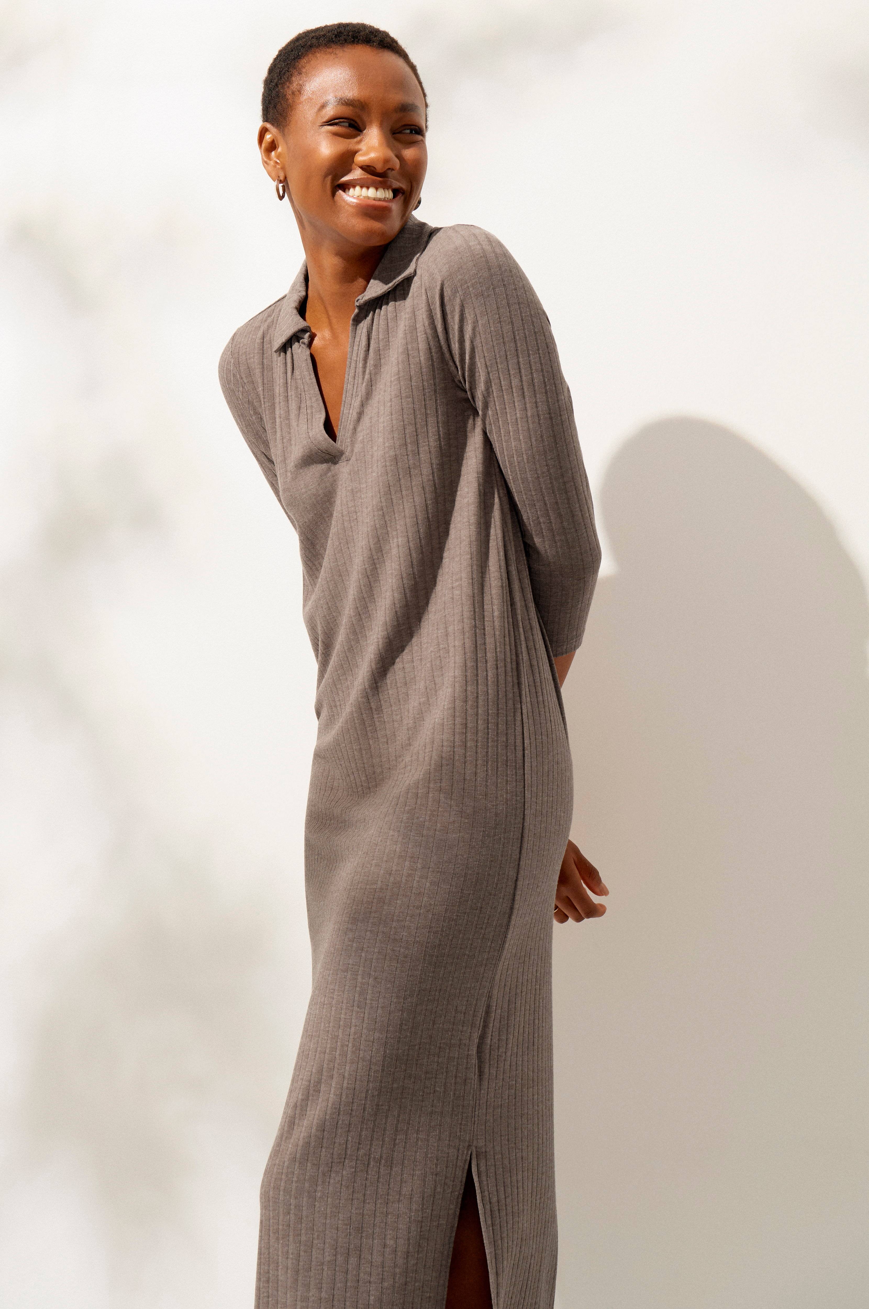 Smuk kvalitet, smuk stor fin beige brun farve. En kjole at trives i indtil efteråret
