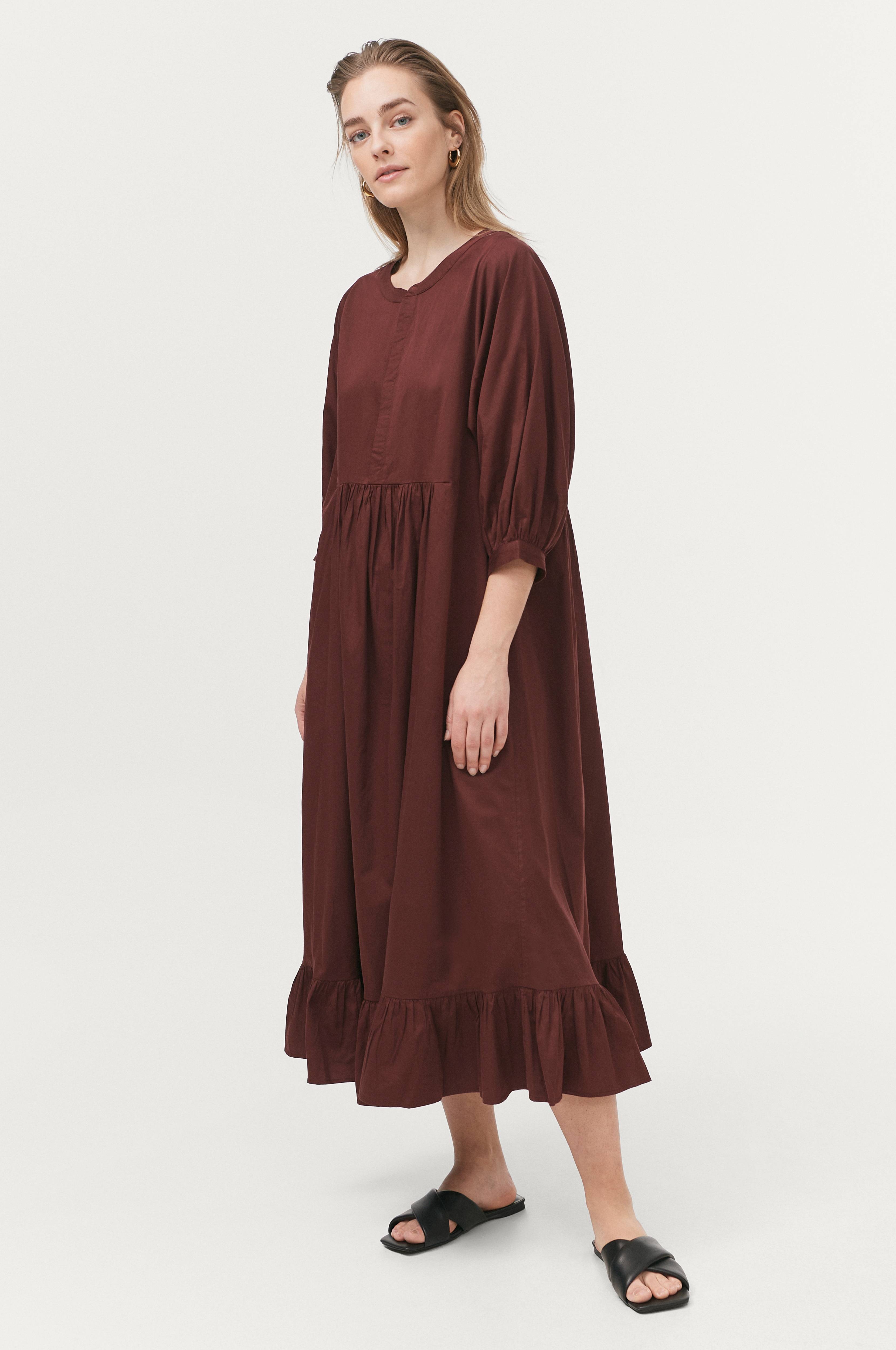 Fin kjole med generøs vidde, tynd og behagelig bomuldskvalitet. Går begge for at klæde sig op o ned.