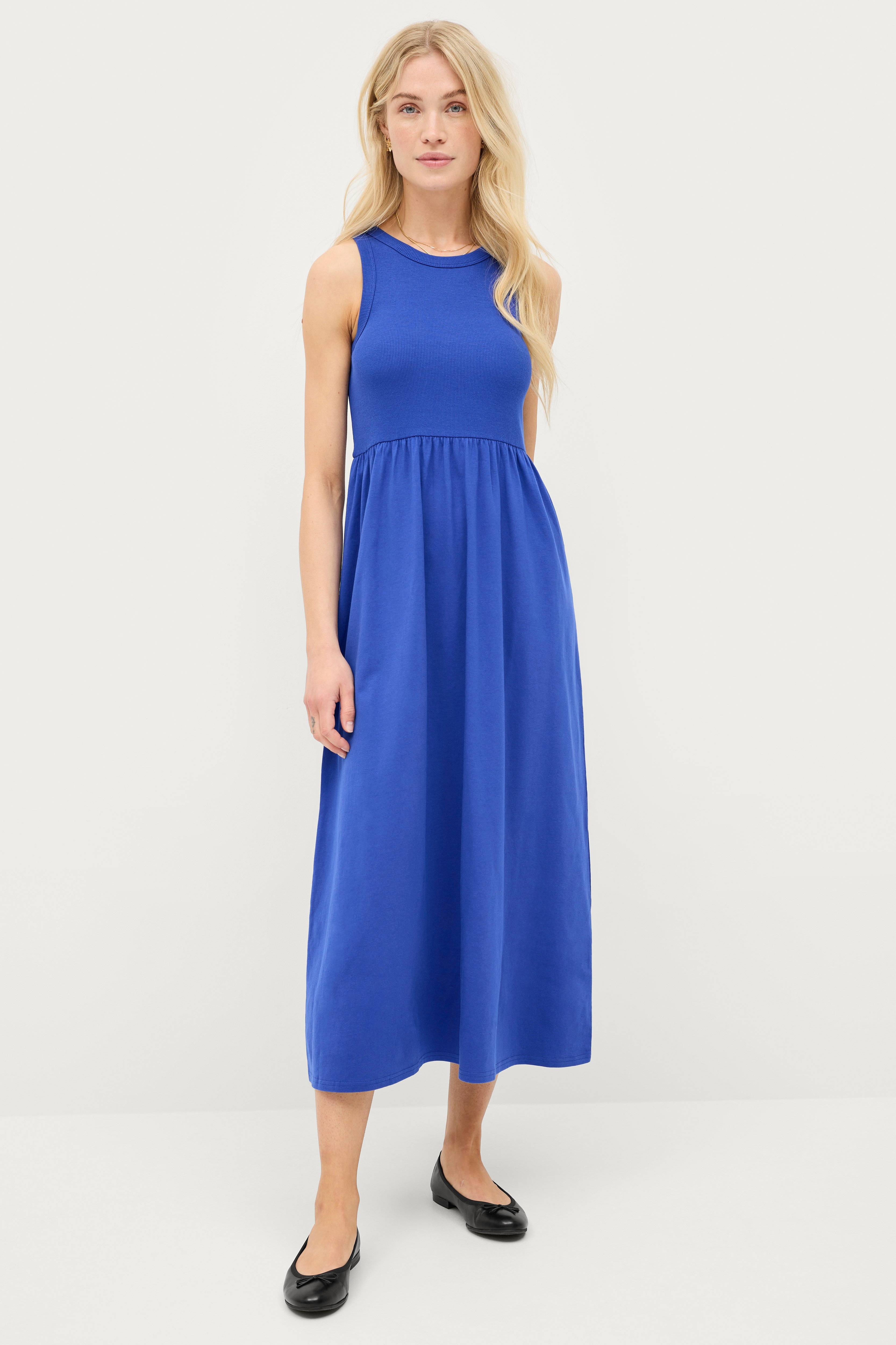 • Ærmeløs kjole i bomuldsjersey • Figursyet øvre del • Rynket talje • Længde: 126 cm i størrelse 34/36 • Ellos samarbejder med Better Cotton for at forbedre bomuldsdyrkningen globalt. Better Cotton er en global nonprofitorganisation, der underviser bomuldsdyrkere i metoder til mere bæredygtig bomuldsdyrkning og arbejder for mere effektiv brug af vand og reduceret brug af pesticider. Better Cotton bringer forbedrede sociale, økonomiske og miljømæssige forhold for bomuldsbønder. Ved at vælge vores bomuldsprodukter støtter du vores investering i Better Cottons mission. Better Cotton er fremskaffet via et system med massebalance og kan ikke fysisk spores til slutprodukter. Besøg bettercotton.org/learnmore for mere information om Better Cotton.