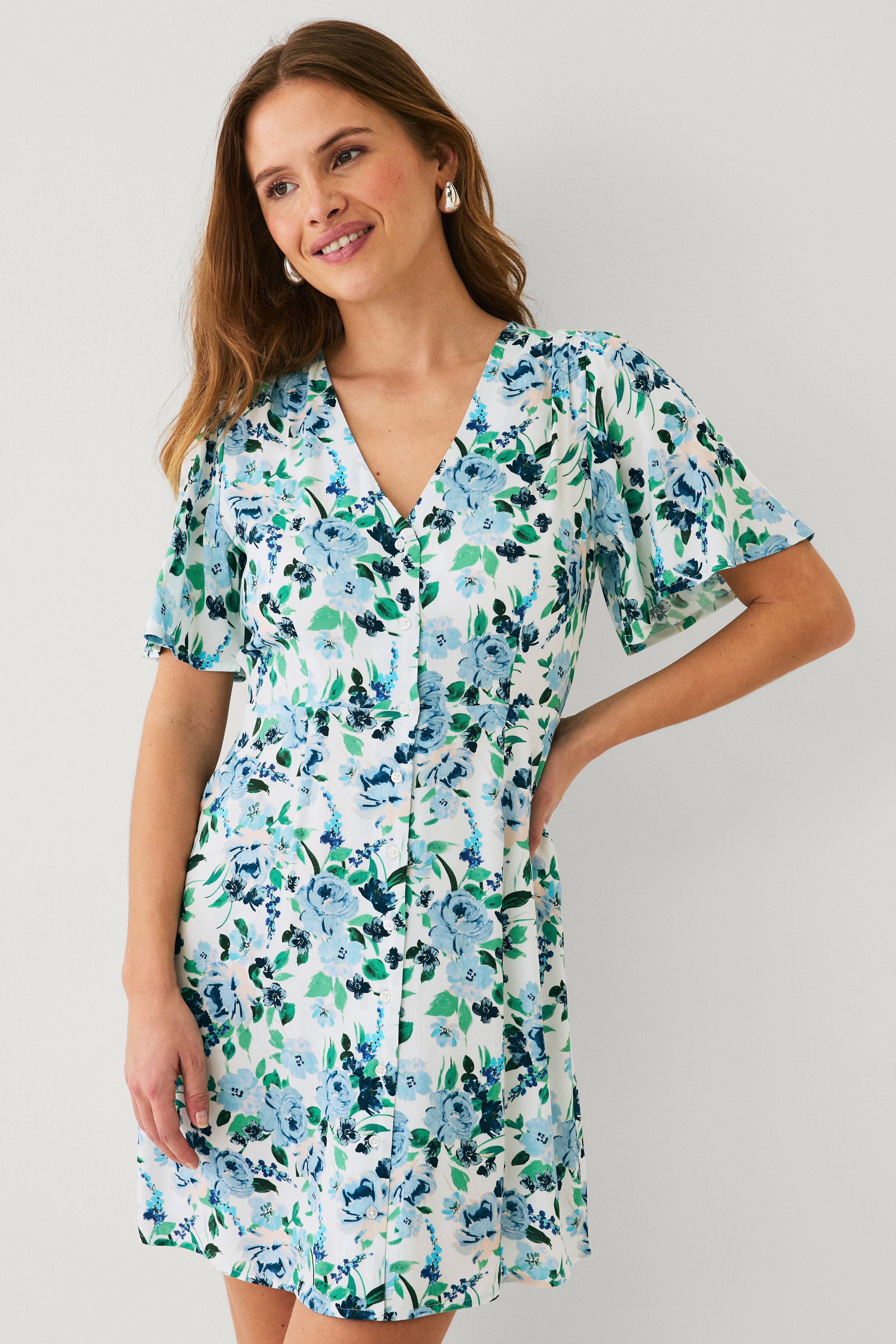 Let sommerkjole i god kvalitet og blomstret mønster, som det skal være i år!
