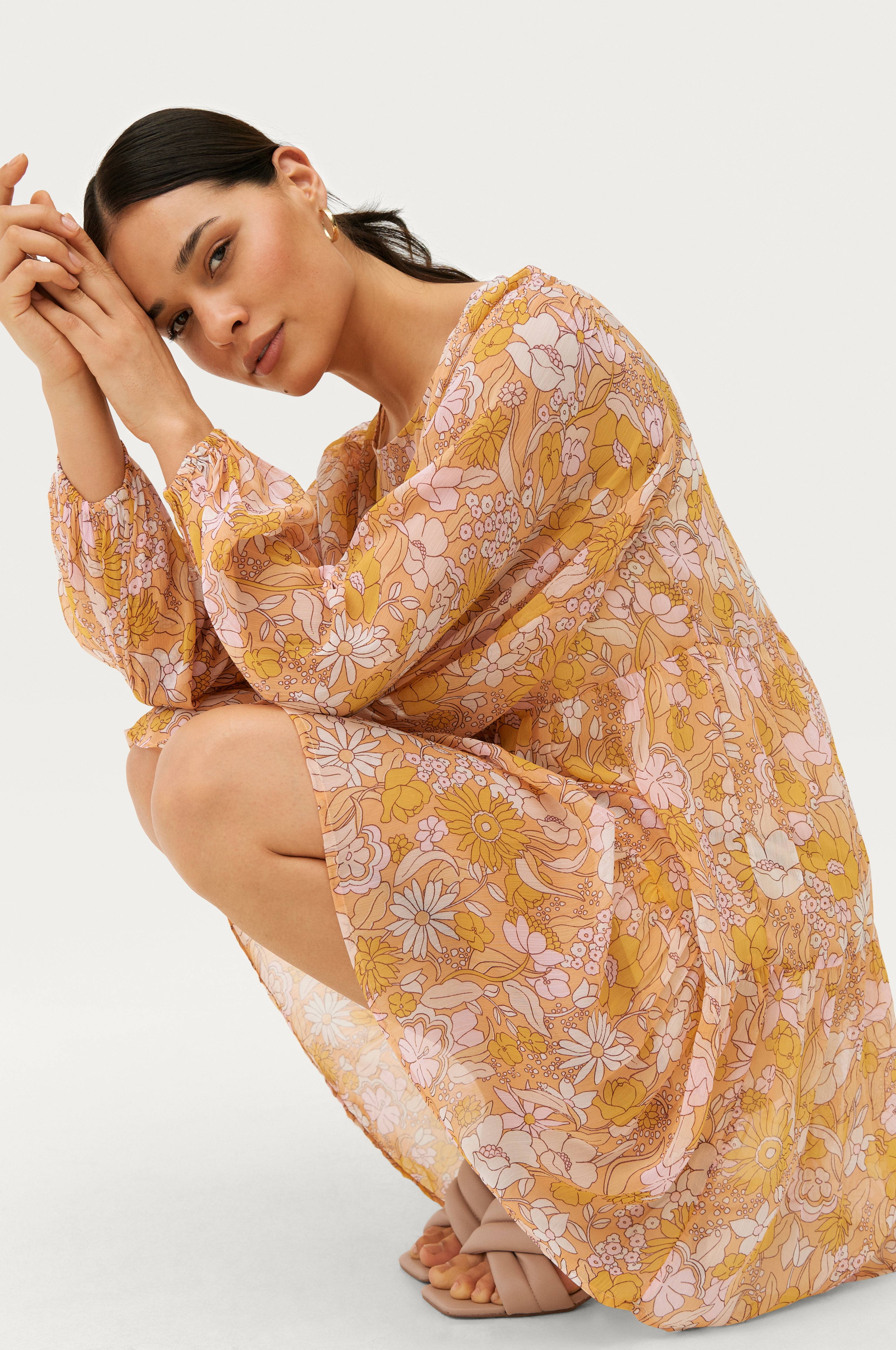 • Kort model med svaj • Rund hals med ventilation og knap i nakken • Lange, voluminøse ballonærmer med elastiske manchetter • Fremstillet af chiffon • Underkjole i jersey • Længde: 90 cm i størrelse 38/40 • Produktet indeholder genindvundet materiale, som genbruges for at reducere mængden af affald samtidigt med at der ikke anvendes nye ressourcer.