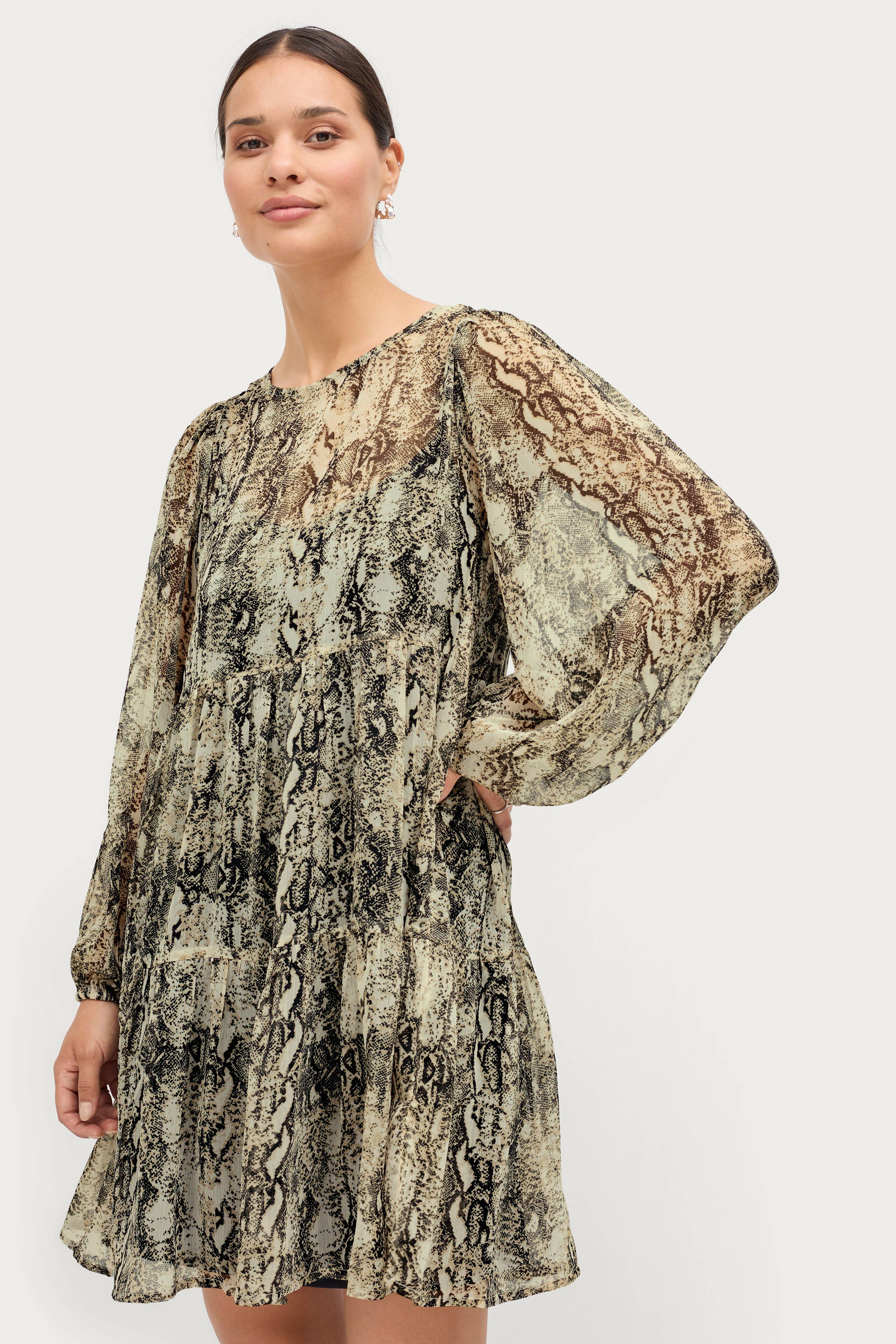 • Kort model med svaj • Rund hals med ventilation og knap i nakken • Lange, voluminøse ballonærmer med elastiske manchetter • Fremstillet af chiffon • Underkjole i jersey • Længde: 90 cm i størrelse 38/40 • Produktet indeholder genindvundet materiale, som genbruges for at reducere mængden af affald samtidigt med at der ikke anvendes nye ressourcer.