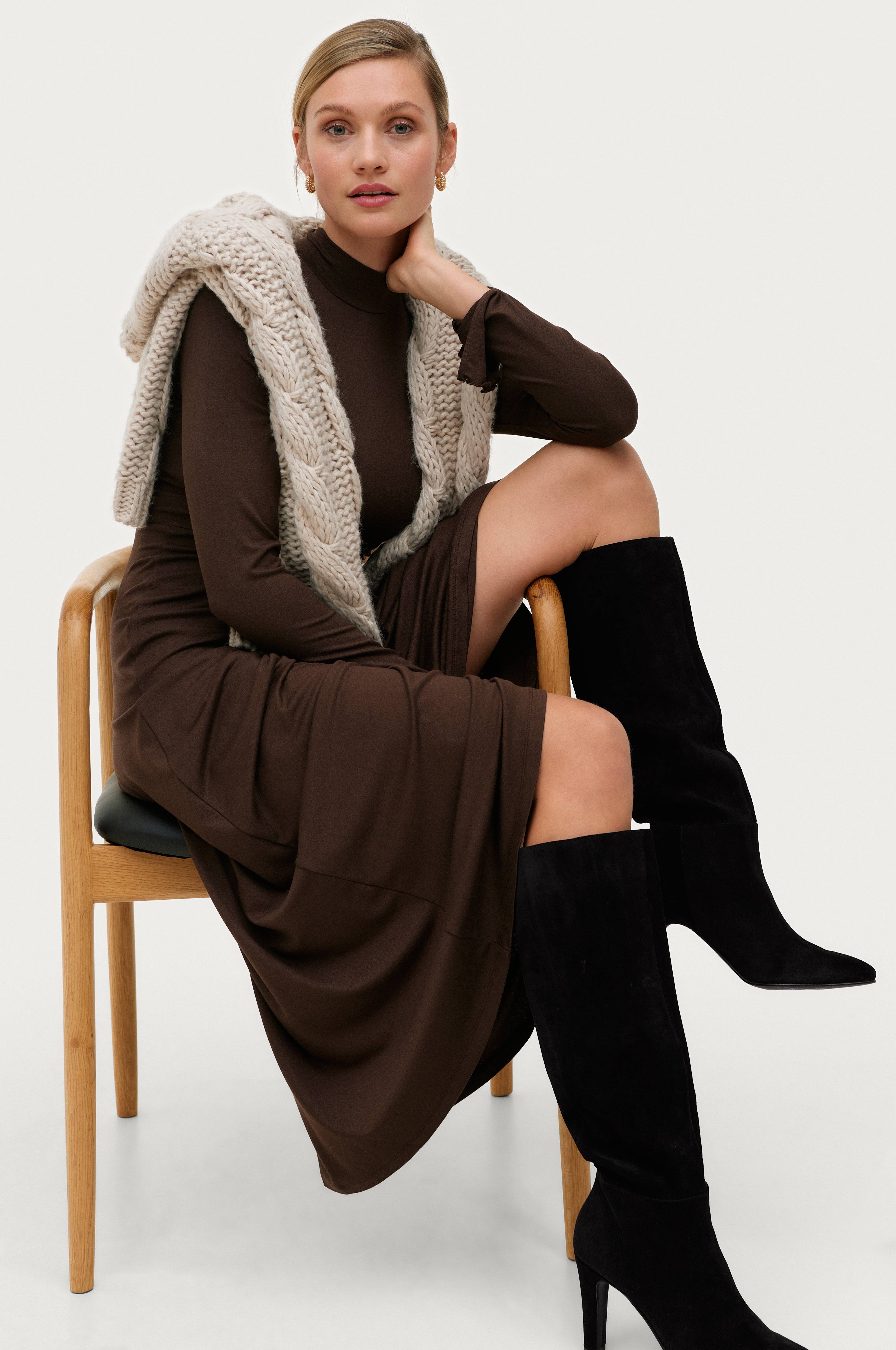 • Læglængde model• Høj udskæring• Lange ærmer med slids ved manchetterne• Bølget kant ved manchetterne• Længde: 128 cm i størrelse 34/36