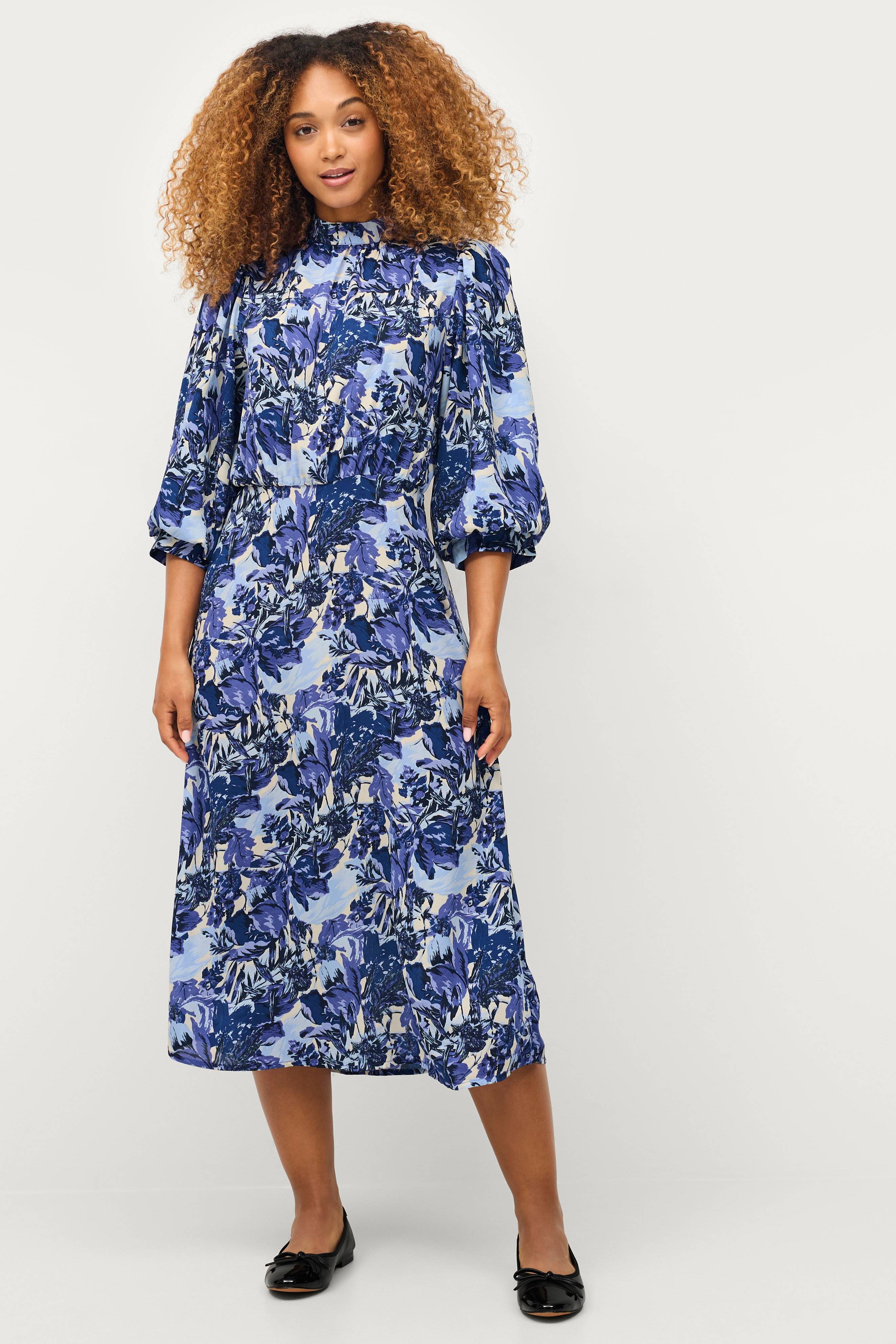 • Model med svaj • 3/4 lange ballonærmer • Ståkrave med samling foran • Ventilation med knap i nakken • Elastisk bånd bagpå ved taljen • Længde: 119 cm i størrelse 36 • Produktet indeholder genindvundet materiale, som genbruges for at reducere mængden af affald samtidigt med at der ikke anvendes nye ressourcer.