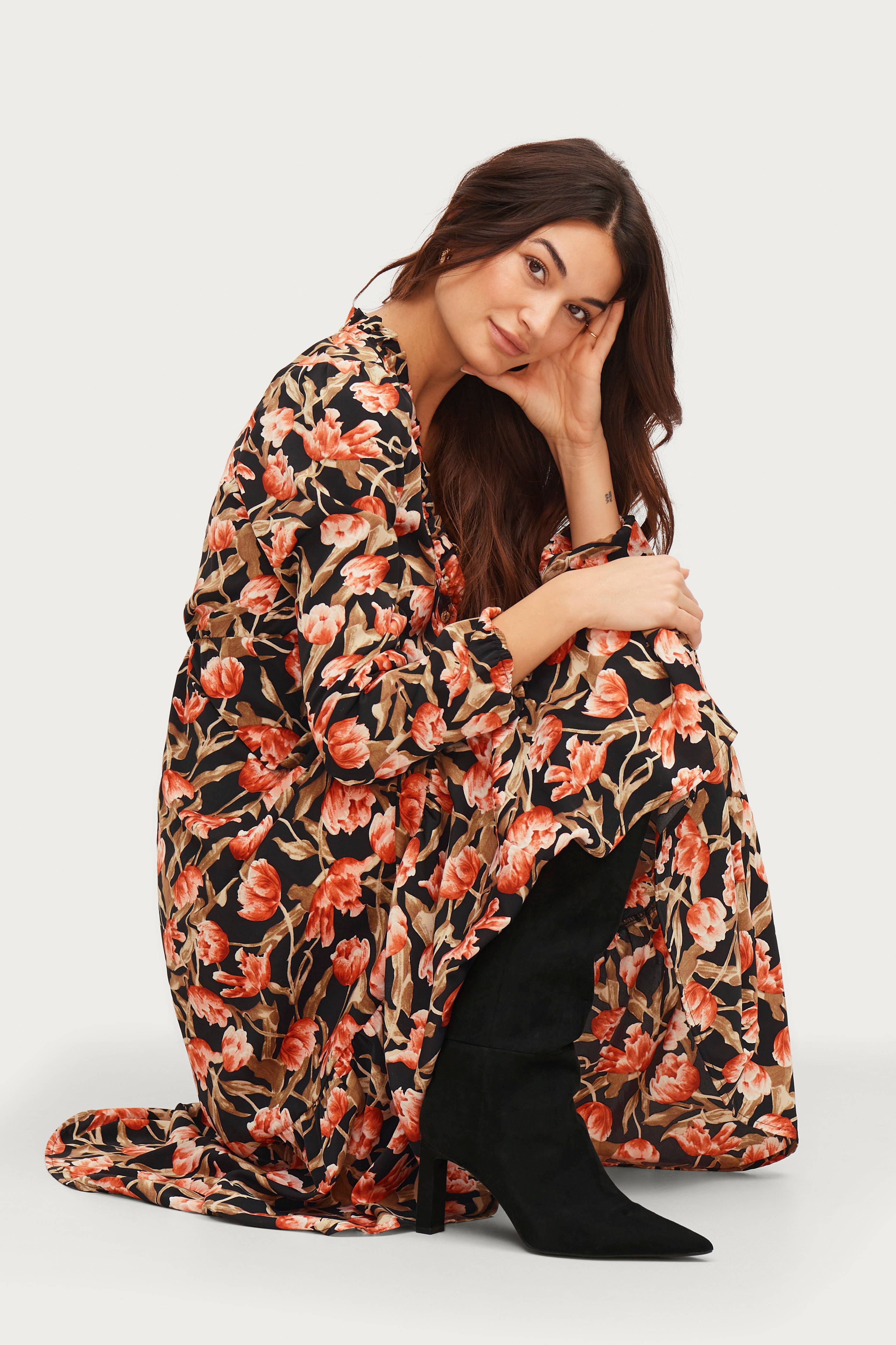 • Mønstret midikjole• V-udskæring med volant• Elastisk udskæring under brystet• Lange ærmer med elastiske manchetter• Volant nederst• Længde: 118 cm i størrelse 34/36