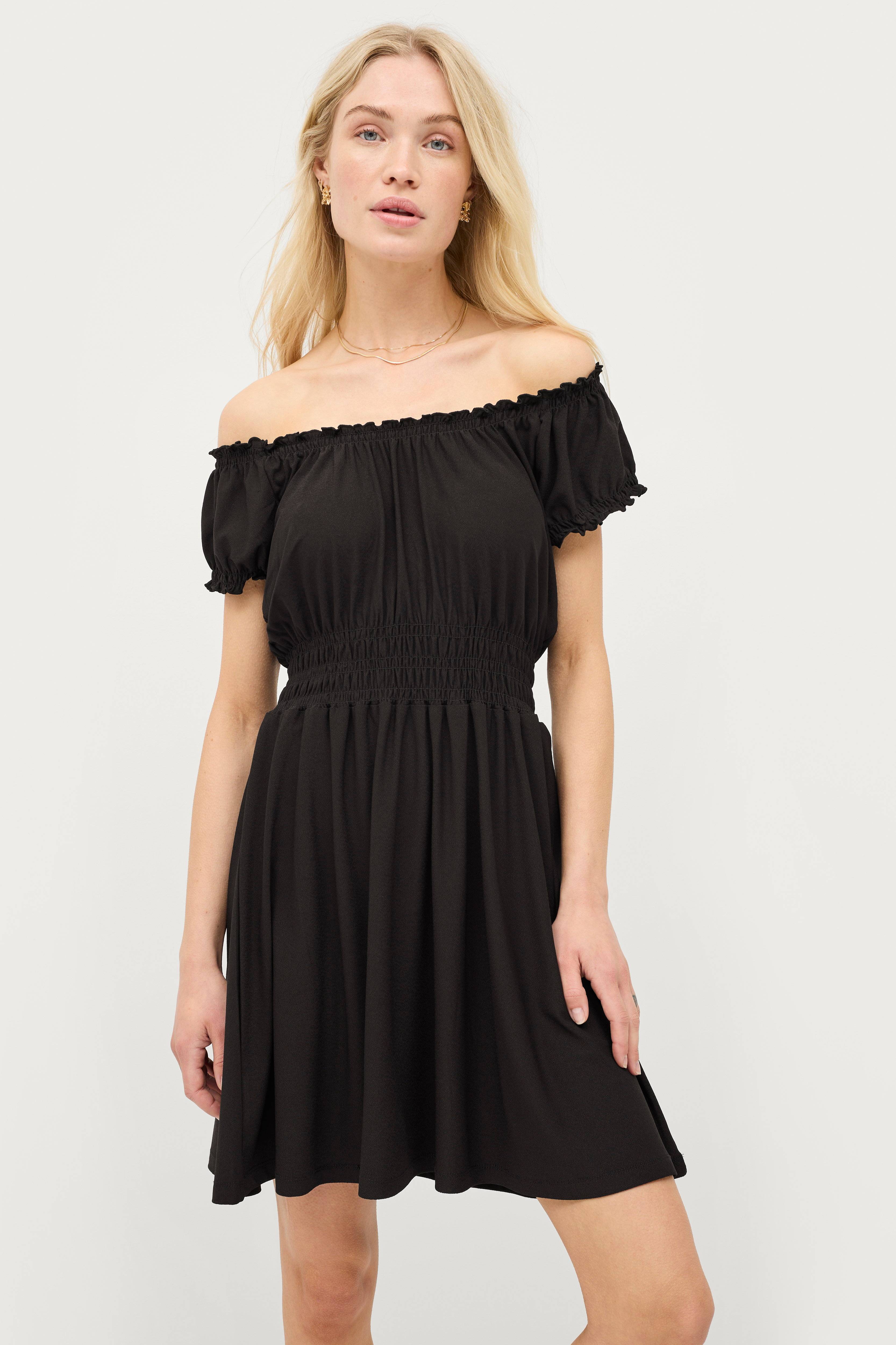 • Kjole i jersey • Elastisk halsudskæring med volant • Korte ærmer med flæsekant • Smock ved taljen • Længde: 90 cm i størrelse 34/36 • Produktet indeholder genindvundet materiale, som genbruges for at reducere mængden af affald samtidigt med at der ikke anvendes nye ressourcer.