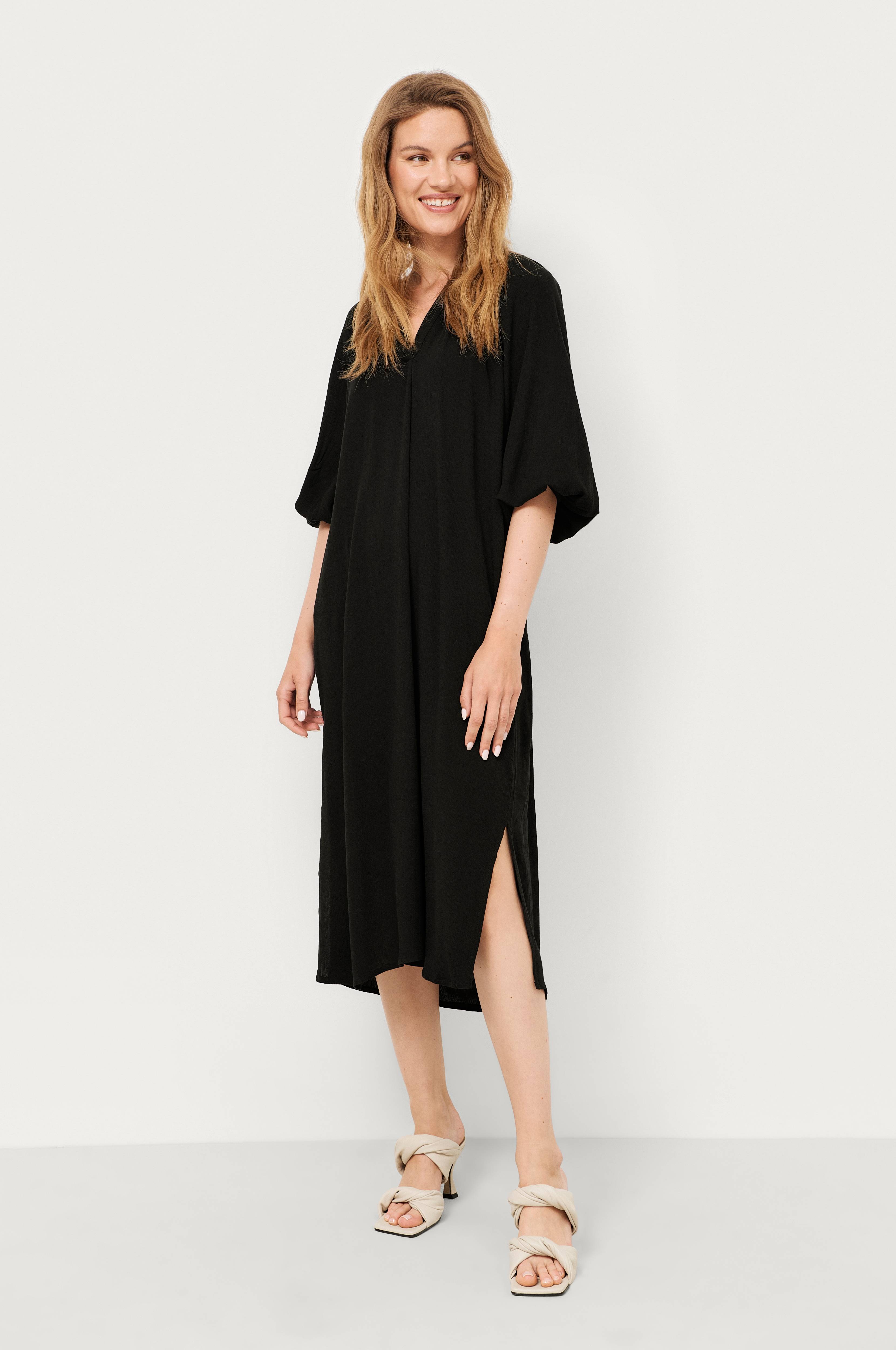 • Ankellang model• Lige pasform• V-udskæring• 3/4 lange ballonærmer med elastiske manchetter• Slidser i siderne• Længde: 120 cm i størrelse 34