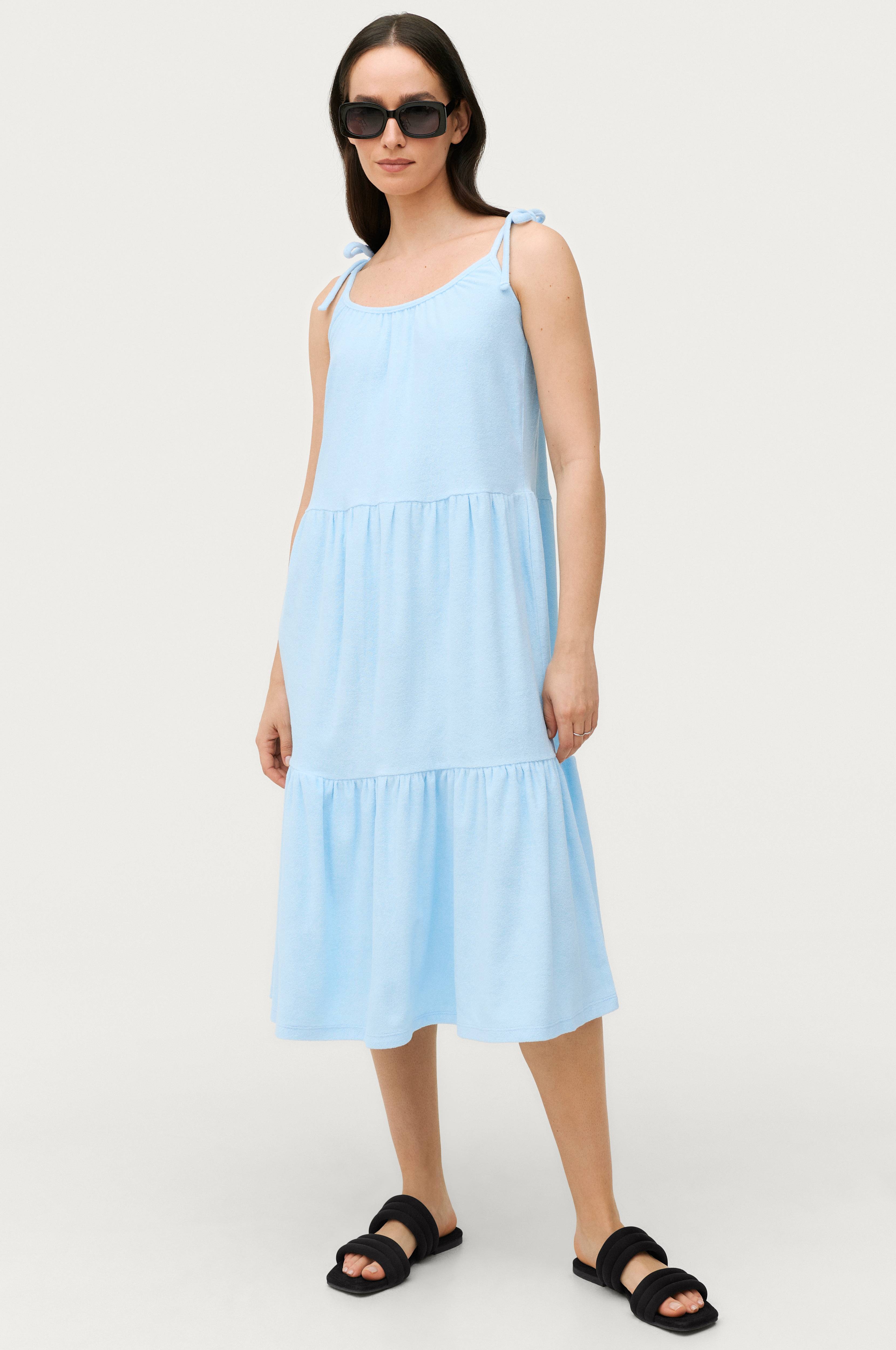- Kjole i frotté - Ærmeløst design med skulderstropper med bindebånd - A-formet model med flæser - Længde: 117 cm i str. 38/40 - Ellos samarbejder med Better Cotton for at forbedre bomuldsdyrkningen globalt. Better Cotton er en global nonprofitorganisation, der underviser bomuldsdyrkere i metoder til mere bæredygtig bomuldsdyrkning og arbejder for mere effektiv brug af vand og reduceret brug af pesticider. Better Cotton bringer forbedrede sociale, økonomiske og miljømæssige forhold for bomuldsbønder. Ved at vælge vores bomuldsprodukter støtter du vores investering i Better Cottons mission. Better Cotton er fremskaffet via et system med massebalance og kan ikke fysisk spores til slutprodukter. Besøg bettercotton.org/learnmore for mere information om Better Cotton.