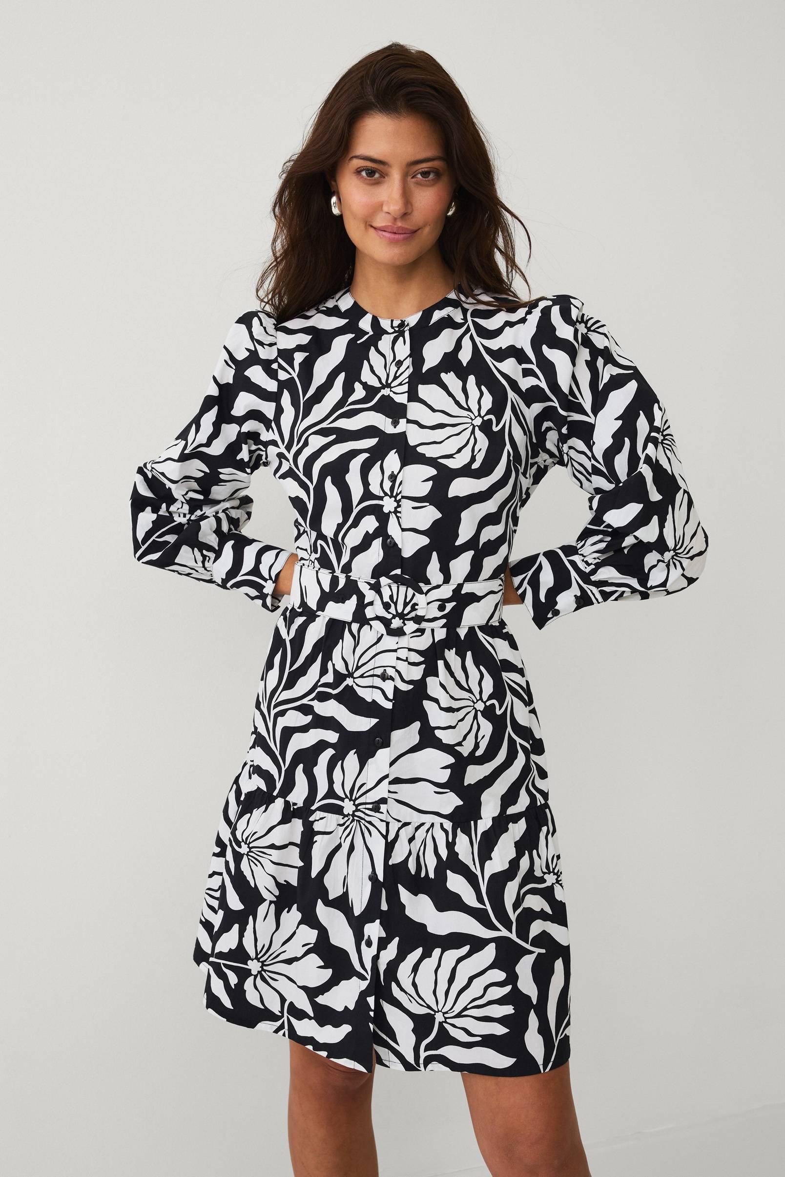 • Let udsvingende model• Knapper foran• Lange ballonærmer med bred manchet• Volantnederdel• Beklædt bælte• Længde: 96 cm i størrelse S