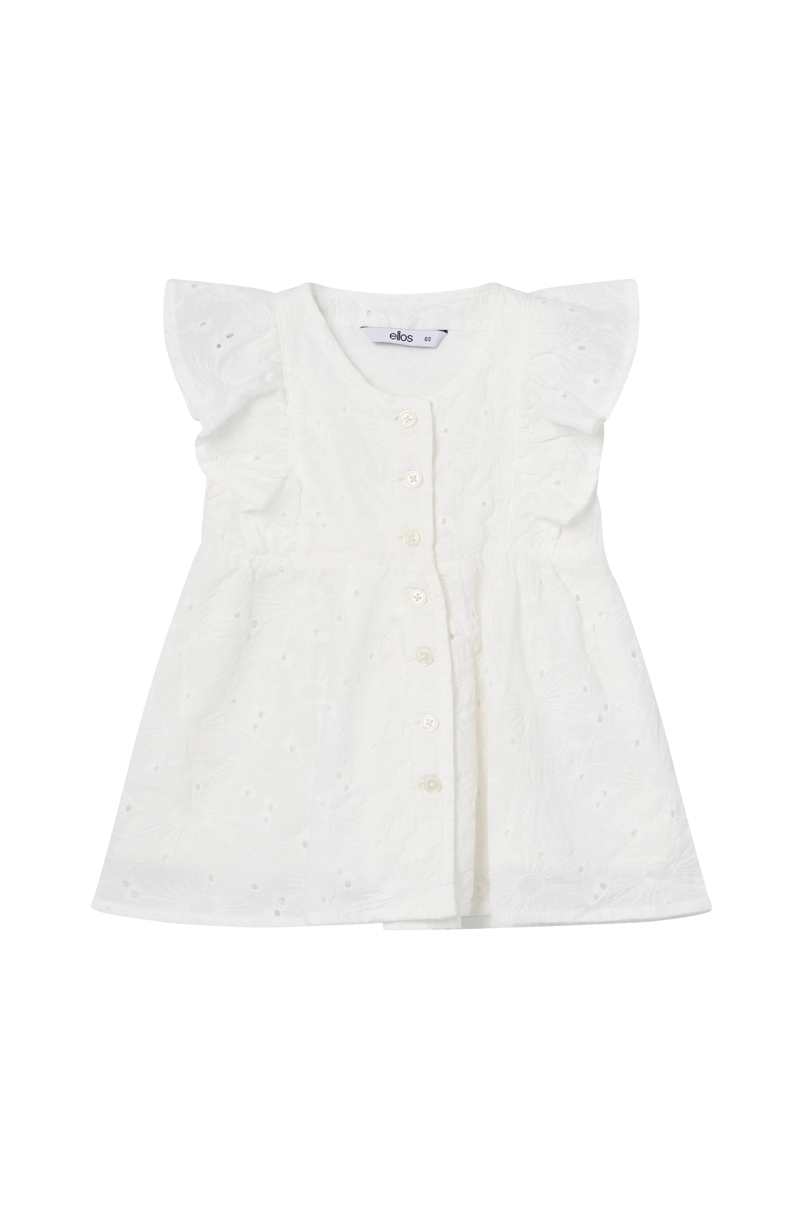• Model med svaj med broderier overalt• Rund hals• Knapper hele vejen frem• Markeret talje• Foret
