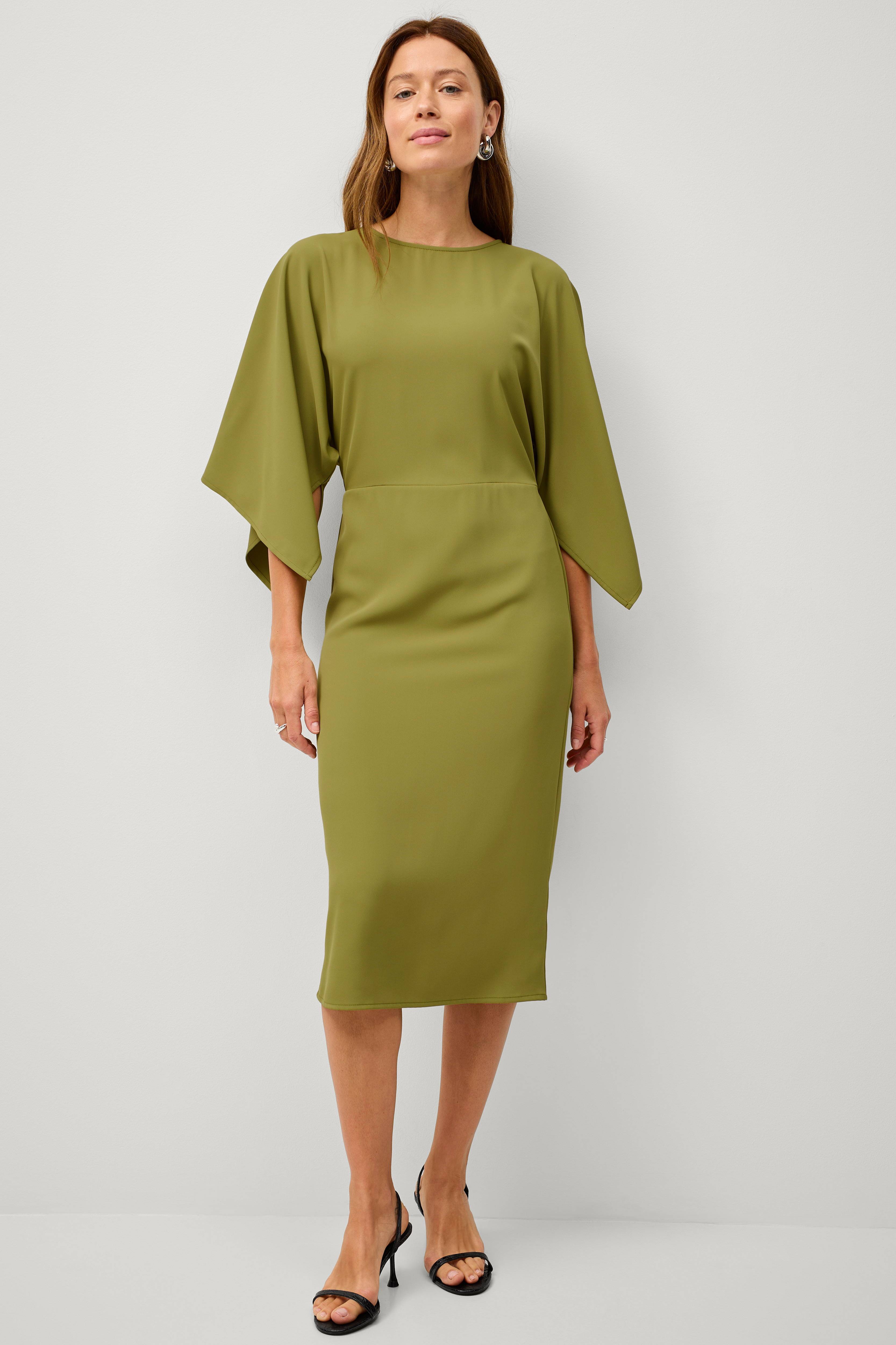 • Figurformede model med defineret talje• Rund hals med knap i nakken• Ekstra bredt, 3/4 langt kimonoærme med lang slids under• Slids nede bagved• Længde: 117 cm i størrelse 36