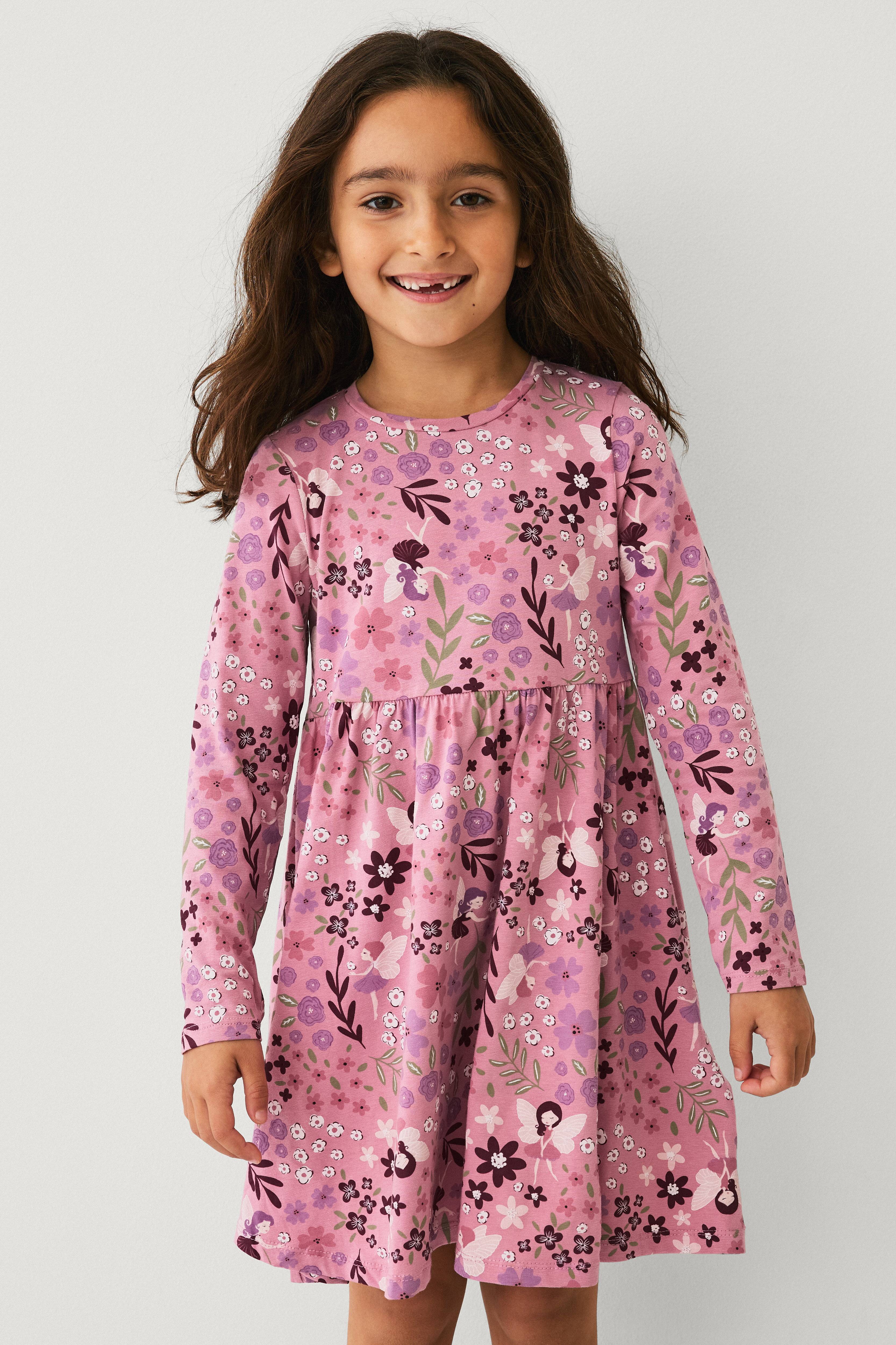 • Langærmet kjole i blød bomuldsjersey• Rund halsudskæring• Printet mønster overalt• Samling ved taljen