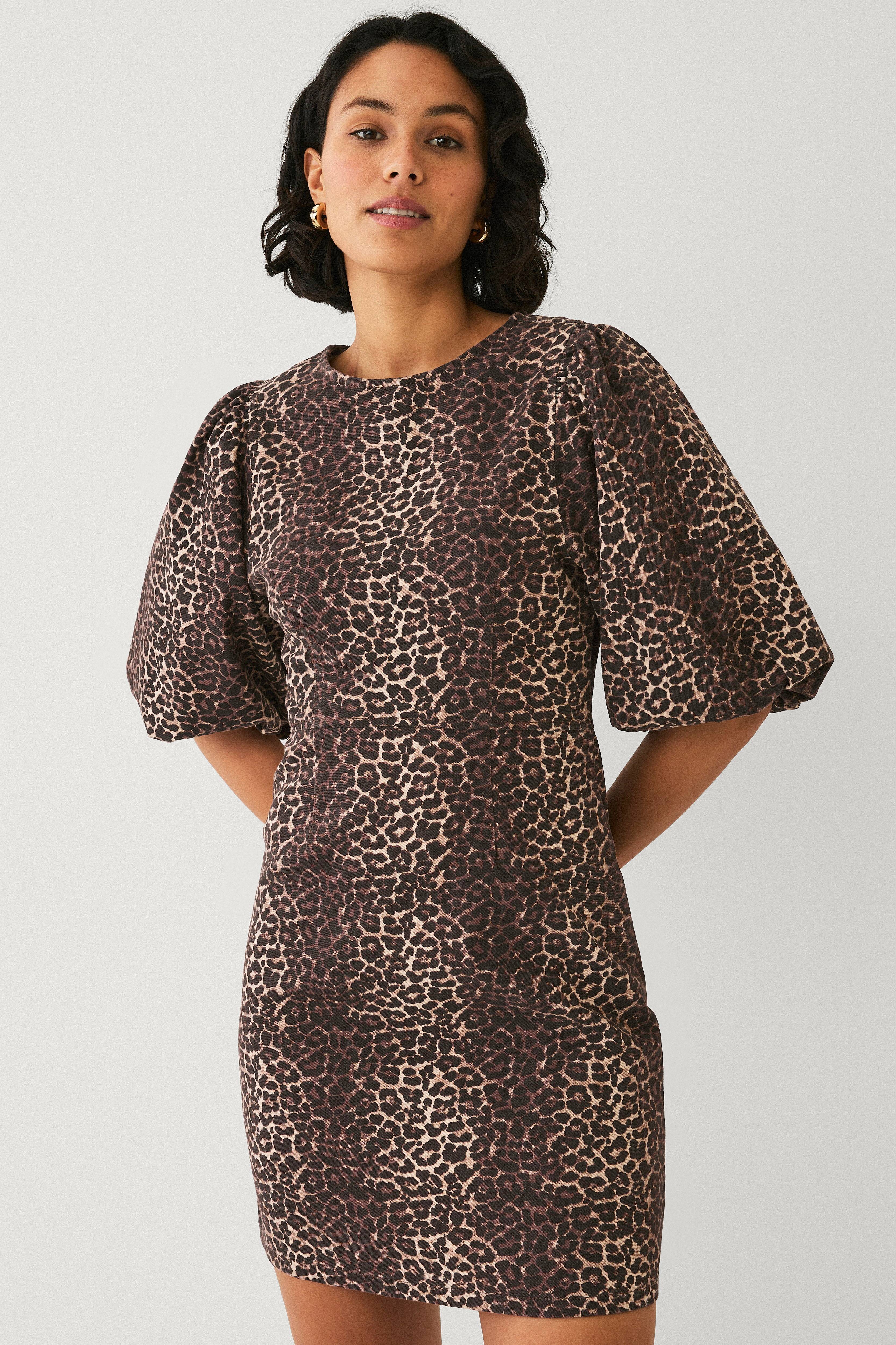 • Rund halsudskæring• Skjult lynlås bagpå• Korte ballonærmer• Længde: 88 cm i størrelse 36