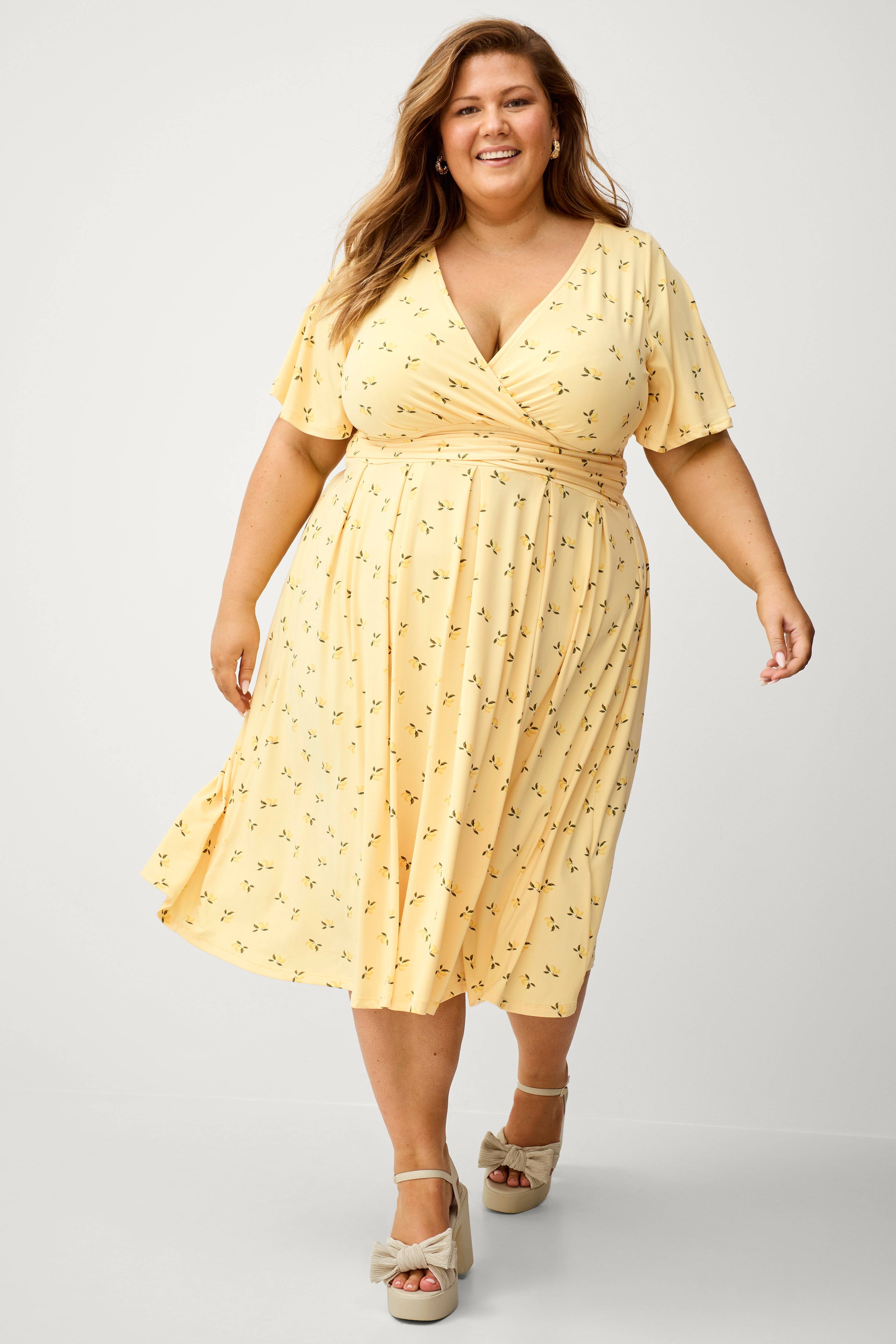 • Kjole i blød, elastisk jersey • Slå-om design på toppen • Korte sommerfugleærmer • Knytnæven er fastgjort i siderne • Længde: 118 cm i størrelse 42/44 • Dette produkt er en del af Ellos eksklusive kollektion i samarbejde med Linda-Marie Assergård.