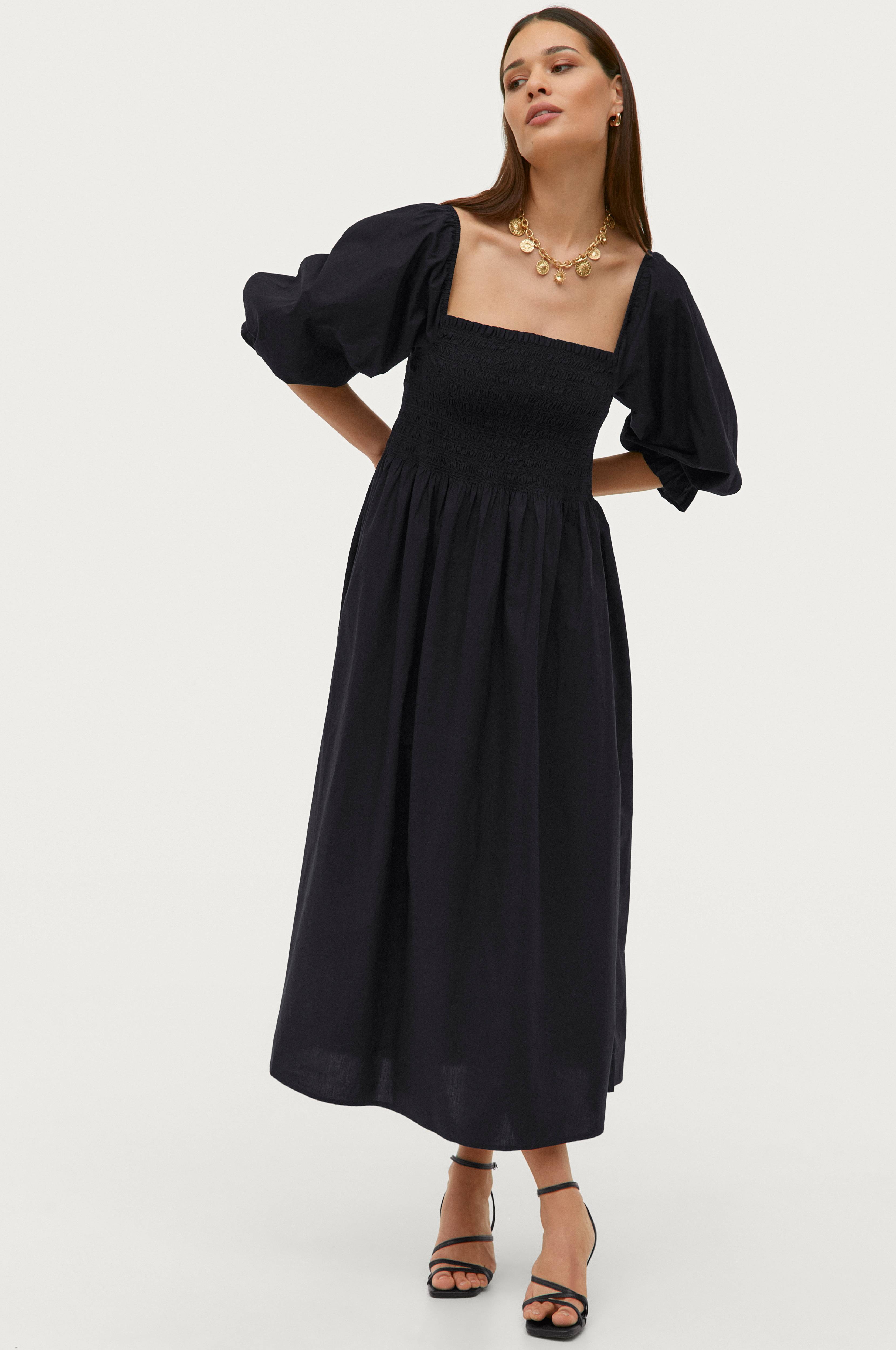 • Firkantet halsudskæring • Smock på toppen • 3/4 lange ballonærmer med elastisk bånd ved manchetterne • Længde: 128 cm i størrelse 34/36 • Ellos samarbejder med Better Cotton for at forbedre bomuldsdyrkningen globalt. Better Cotton er en global nonprofitorganisation, der underviser bomuldsdyrkere i metoder til mere bæredygtig bomuldsdyrkning og arbejder for mere effektiv brug af vand og reduceret brug af pesticider. Better Cotton bringer forbedrede sociale, økonomiske og miljømæssige forhold for bomuldsbønder. Ved at vælge vores bomuldsprodukter støtter du vores investering i Better Cottons mission. Better Cotton er fremskaffet via et system med massebalance og kan ikke fysisk spores til slutprodukter. Besøg bettercotton.org/learnmore for mere information om Better Cotton.