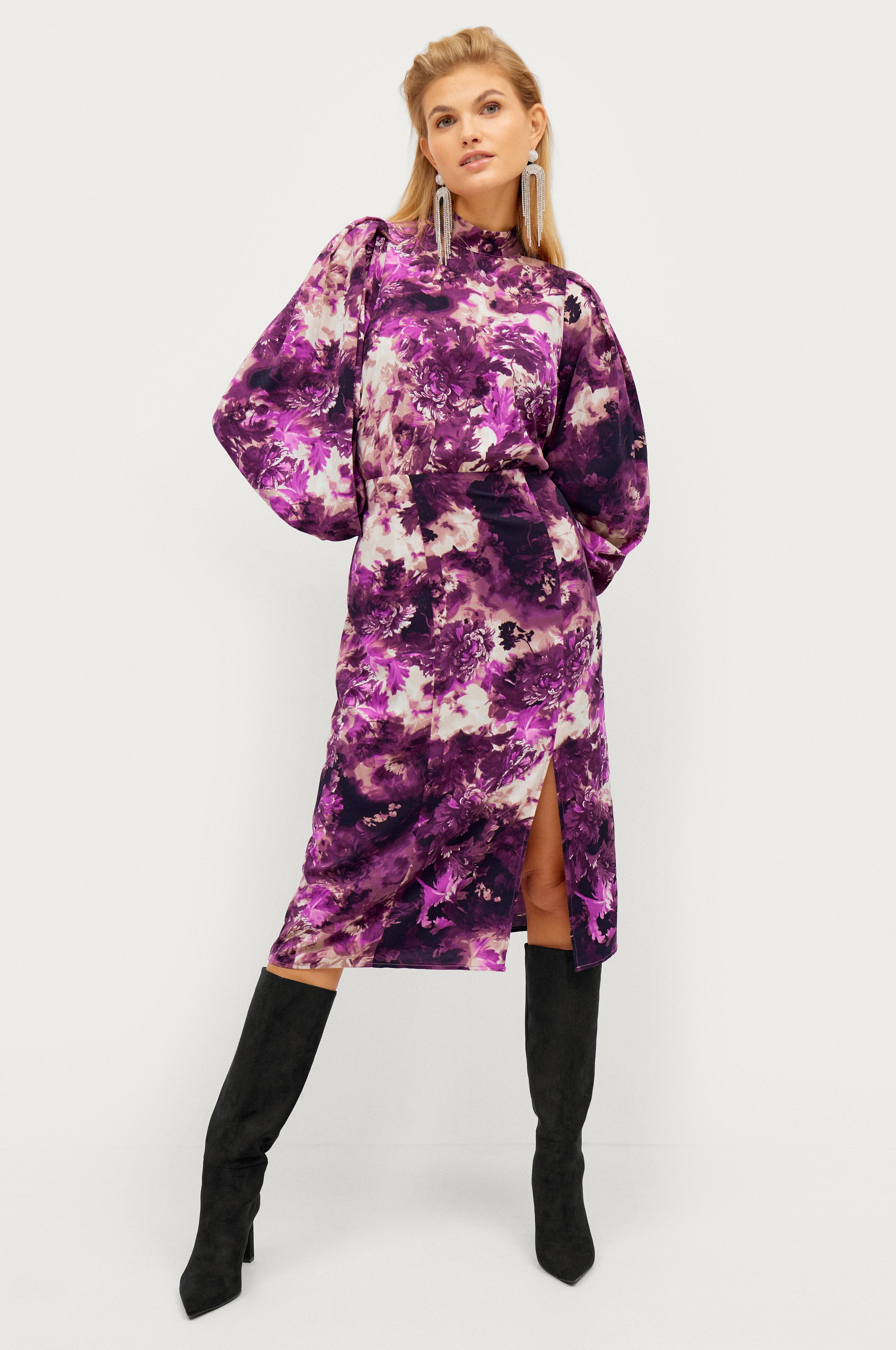 • Læglængde model• Lange, brede ballonærmer med manchet ved manchetterne og lægge på skuldrene• Ståkrave• Skjult lynlås i ryggen• Slids nede foran• Foret• Længde: 121 cm i størrelse 36
