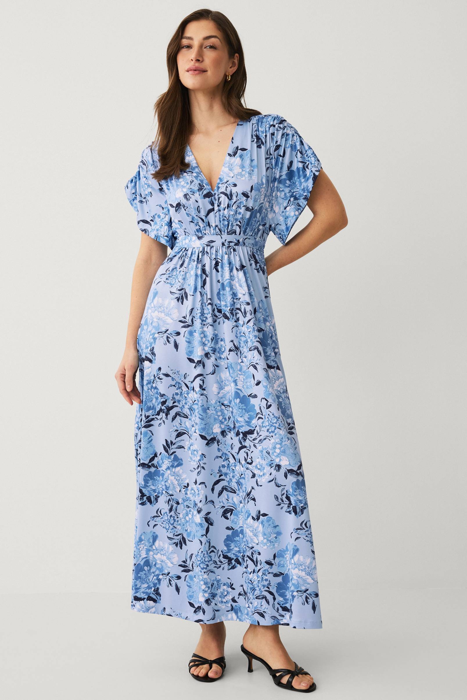 • Kjole i genanvendt, blød, elastisk polyester• V-formet halsudskæring• Dekorativt bindebånd ved taljen• Pasform med svaj nederst• Maxi-længde• Kort kimonoærme med drapering ved skuldrene• Længde: 132 cm i størrelse S