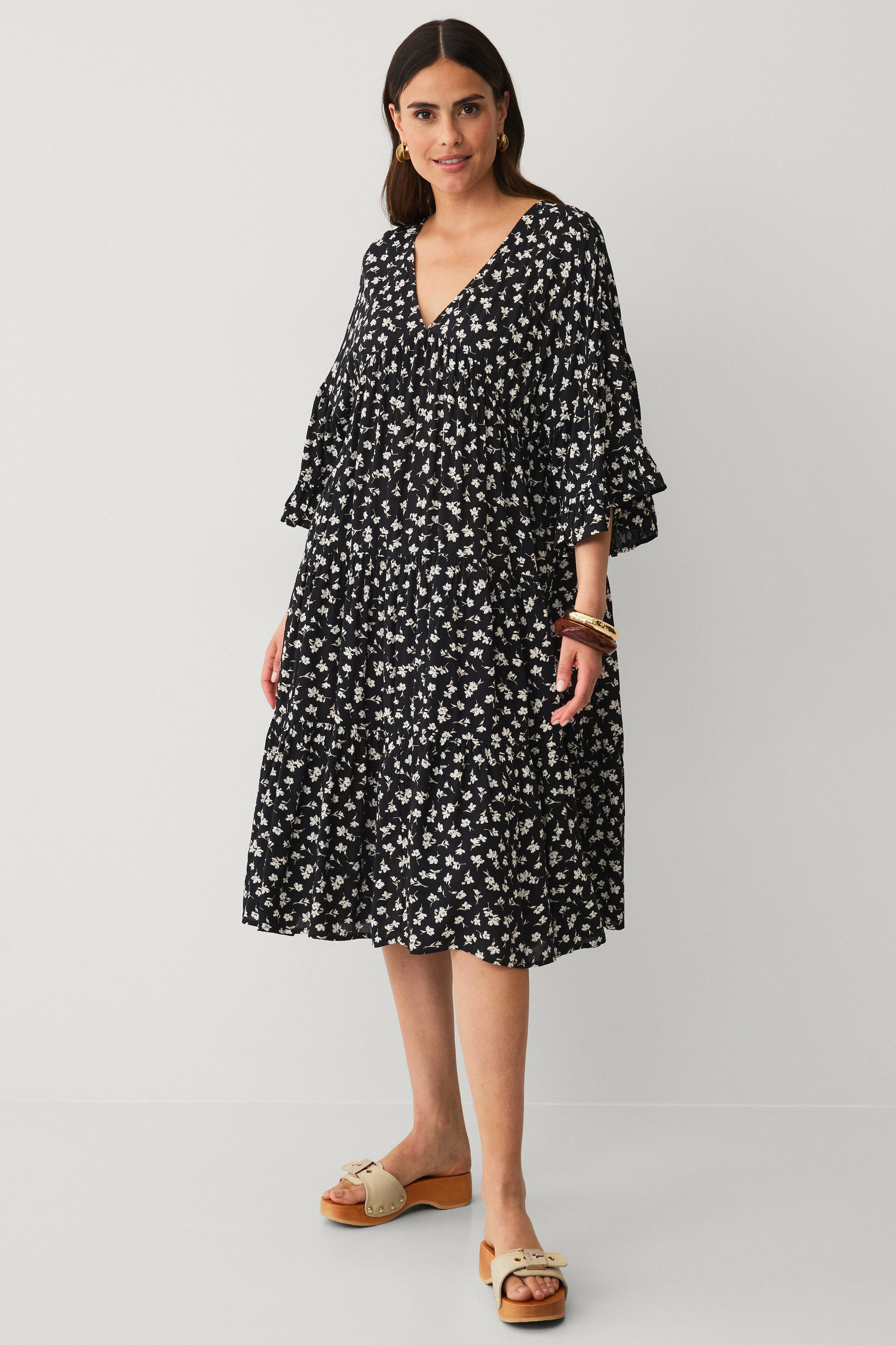 Dejligt stof og model. Minus for at være gennemsigtig, men ellers dejlig løs. Jeg bruger den mest som strand- og hjemmesommerkjole. Jeg er 160 cm høj og rund samt bustet. Størrelse 50 passede god…