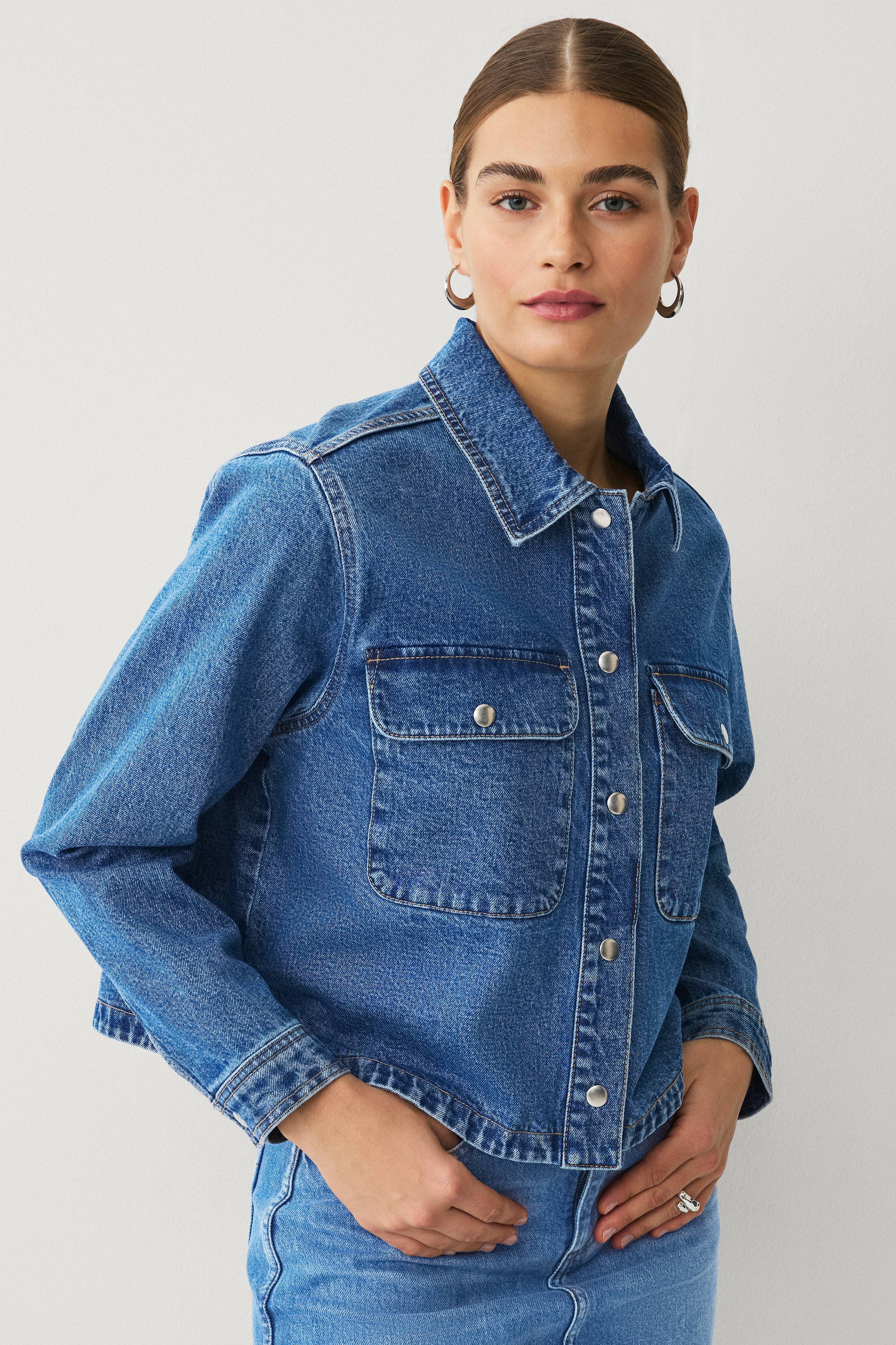 Perfekt i størrelse og virkelig behageligt materiale. Ikke for kraftigt stof, som det kan være i mange denimjakker, hvilket får dem til at føles tunge og stive.