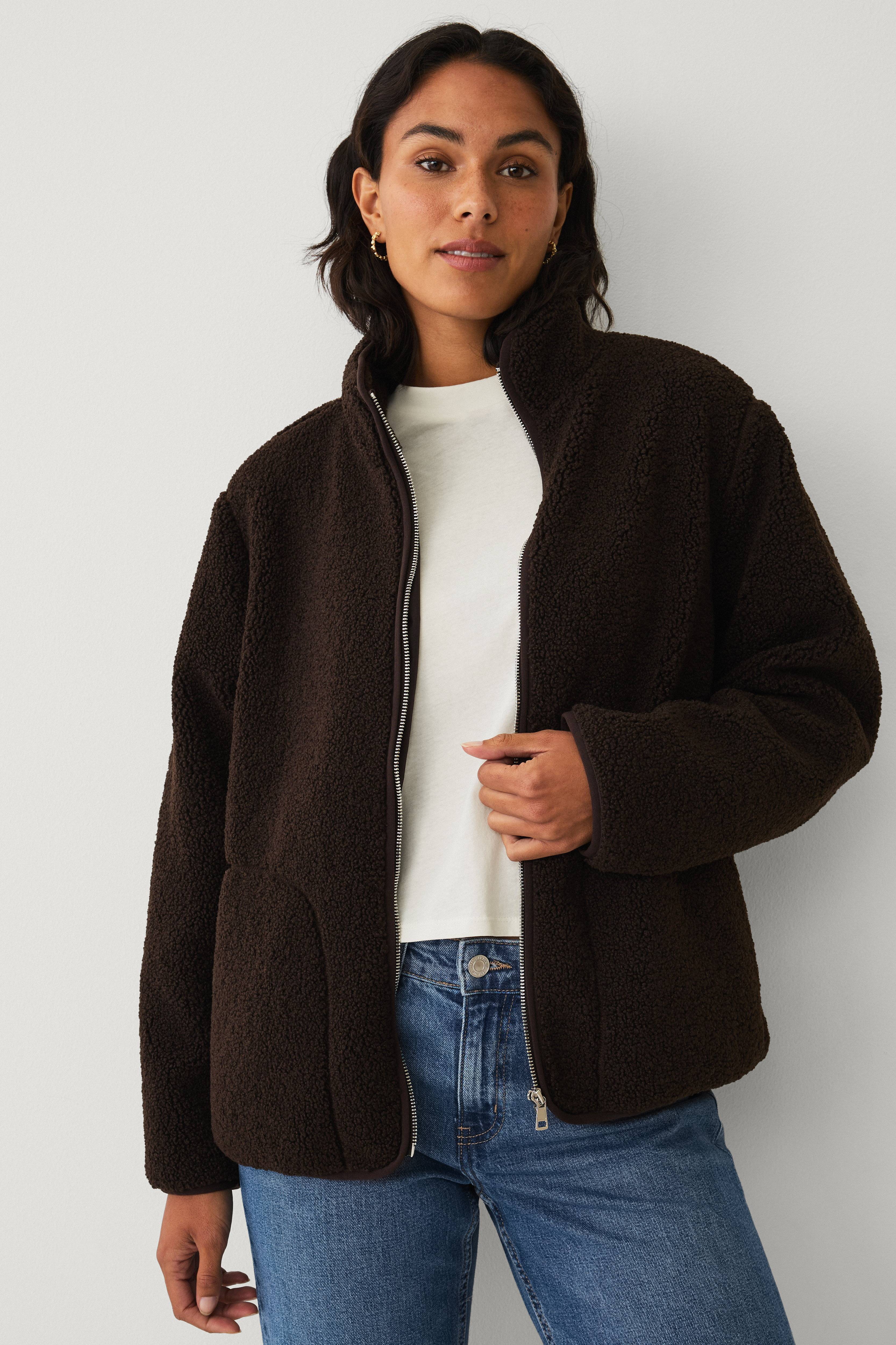 • Kort fleecejakke • Oversize model med høj krave • Fuld længde lynlås • To lommer • Bløde, tynde elastikkanter ved ærmeafslutningerne, nederst og på kraven • Længde: 64 cm i størrelse S