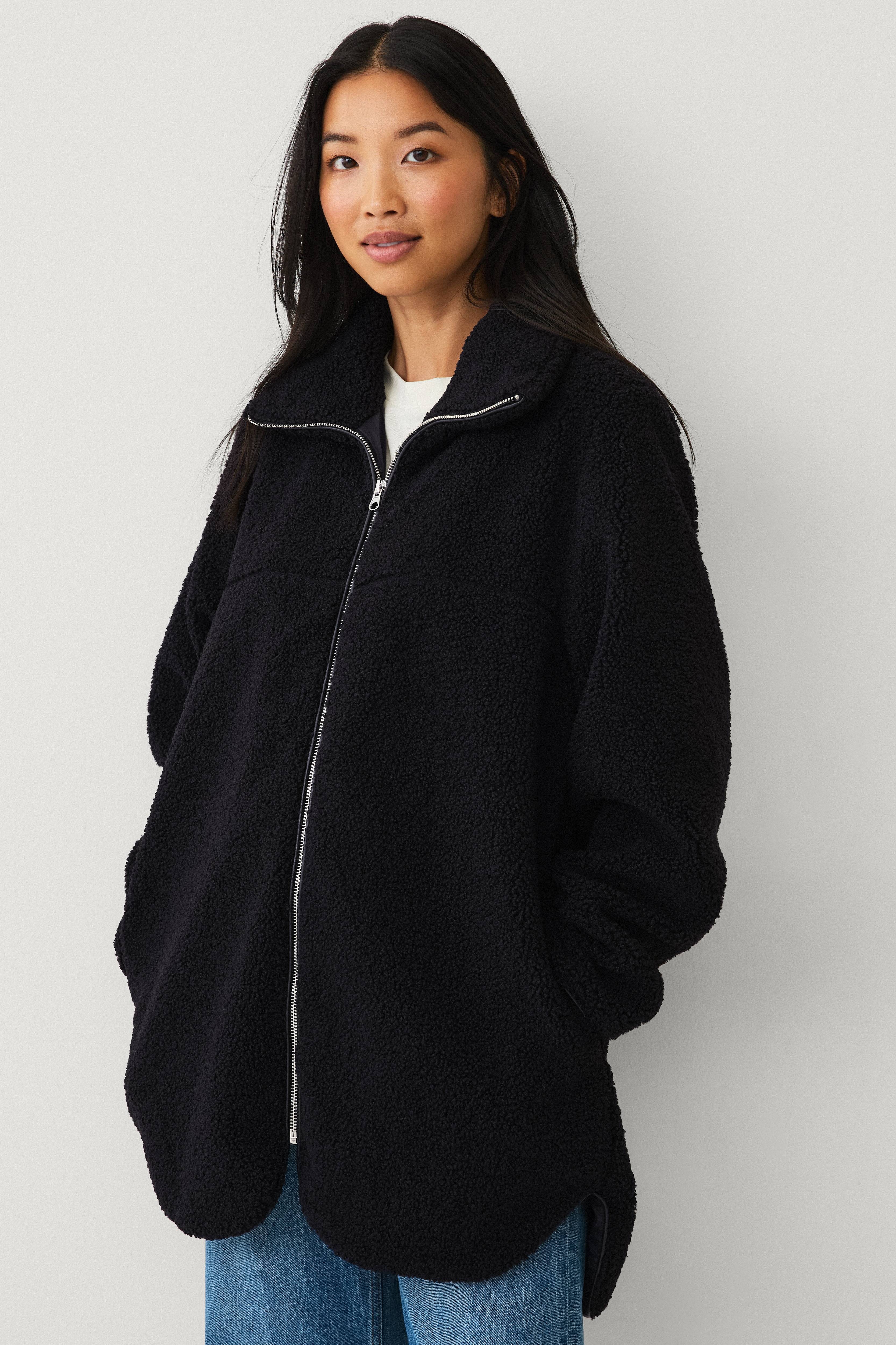 • Jakke i bunke med vævet inderfor• Oversize model• Opretstående krave• Lynlås foran• Sidelommer med indvendig fleece• Bagside med lang søm og slids i siderne• Længde: 84 cm i størrelse S