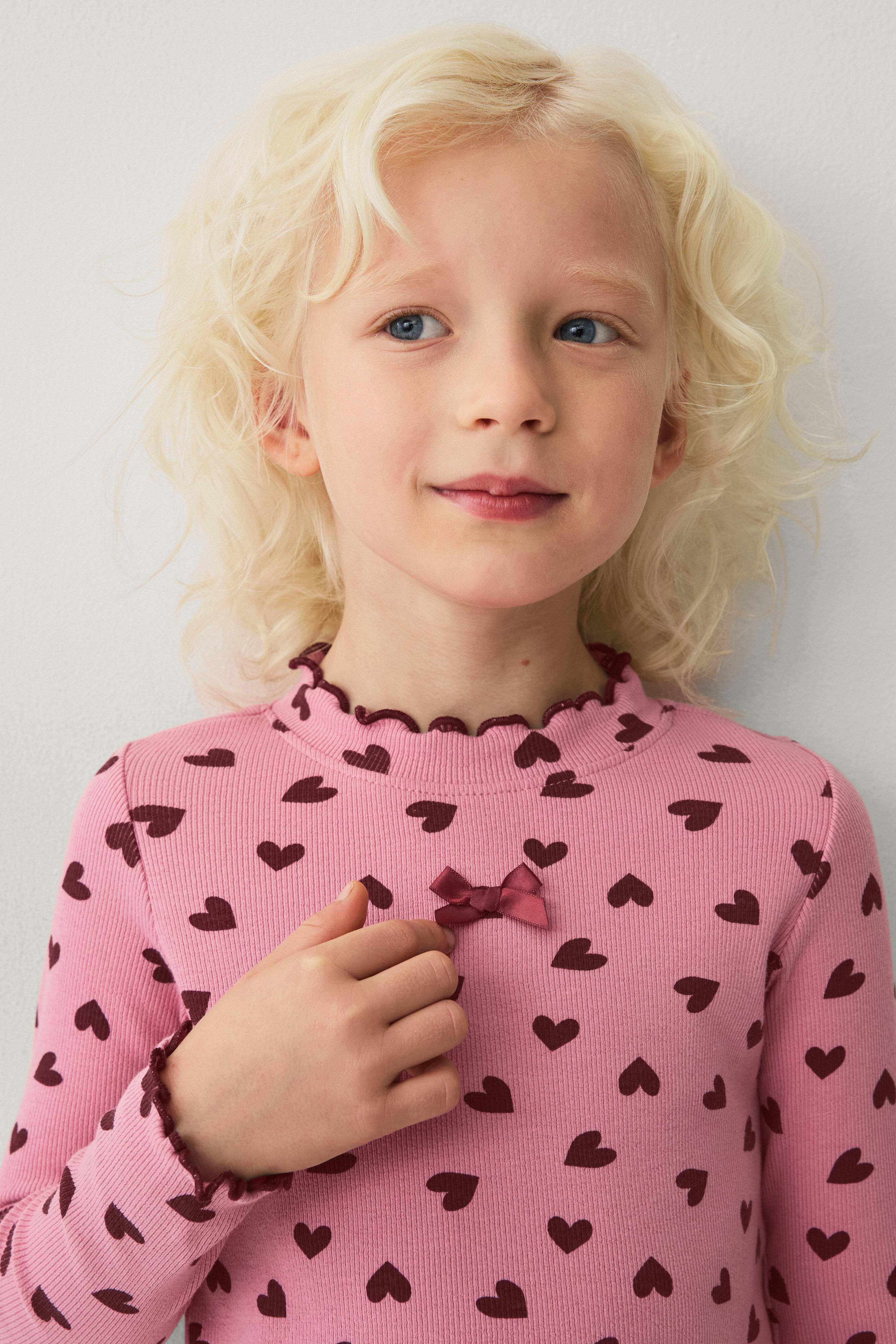 • Ribbet top med printede hjerter
