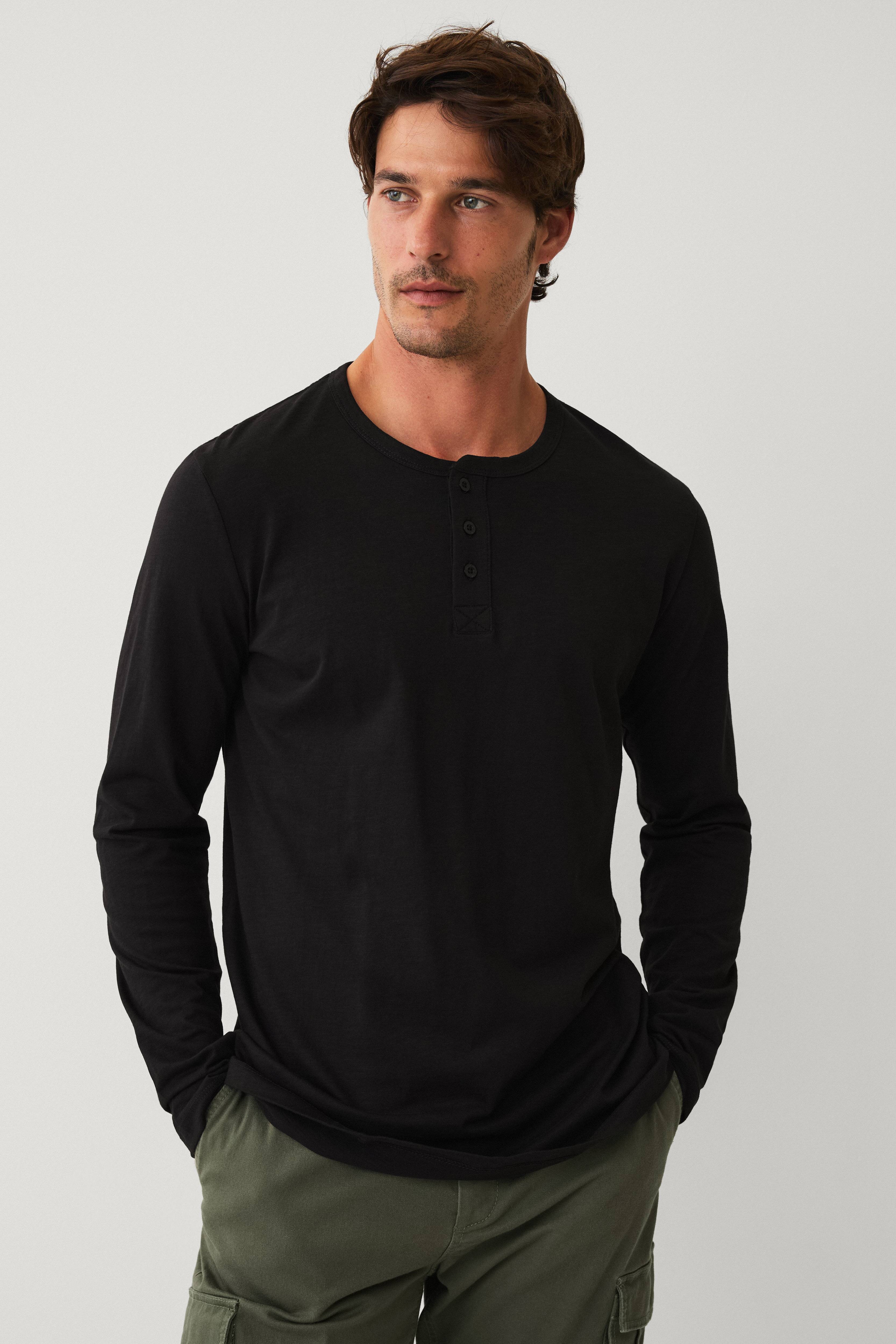 • Meleret model med kort knaplukning foran• Rund halsudskæring• Lange ærmer• Normal pasform