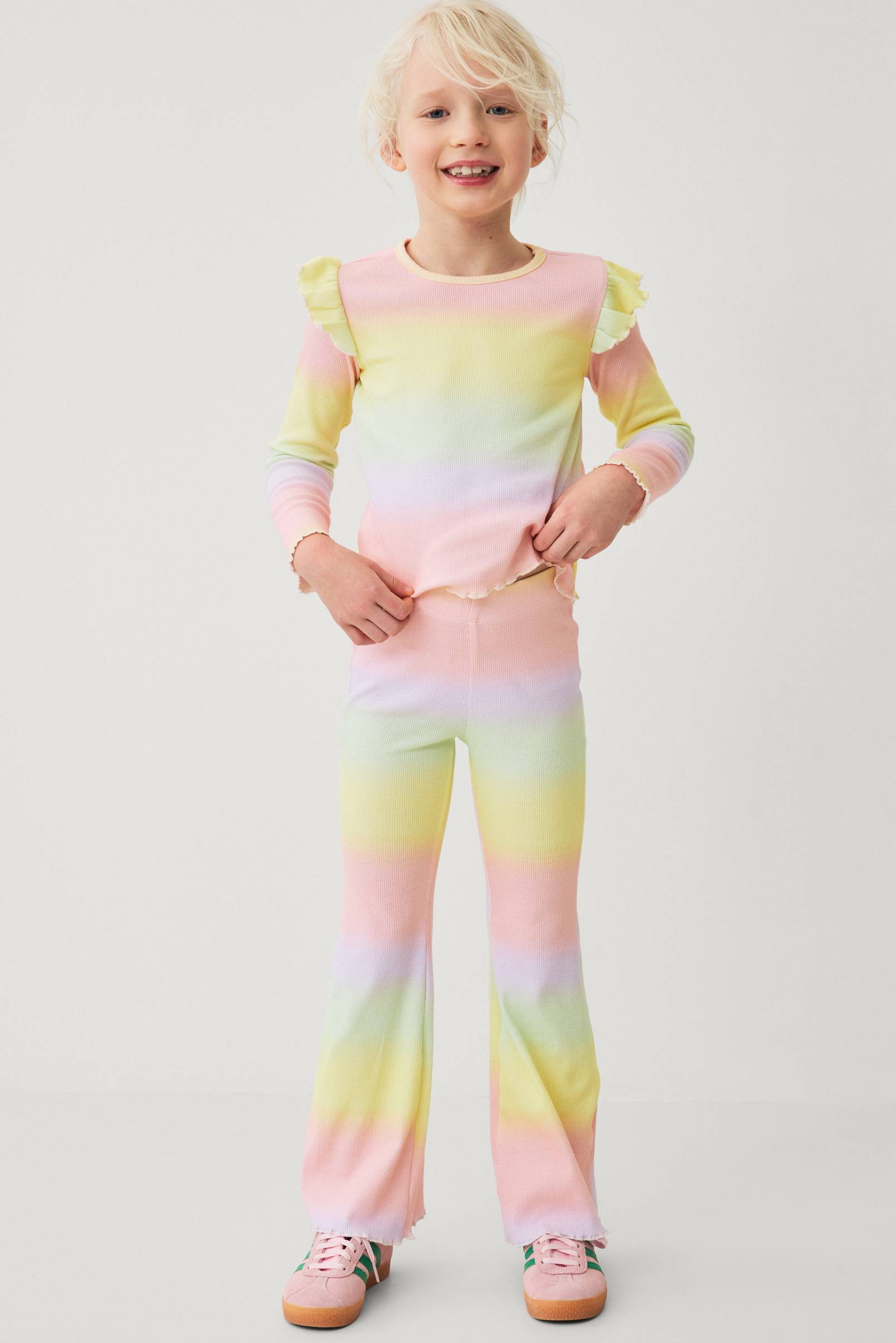 • Ribbede leggings med svaj• Elastisk talje• Bølget kant ved enden af benene